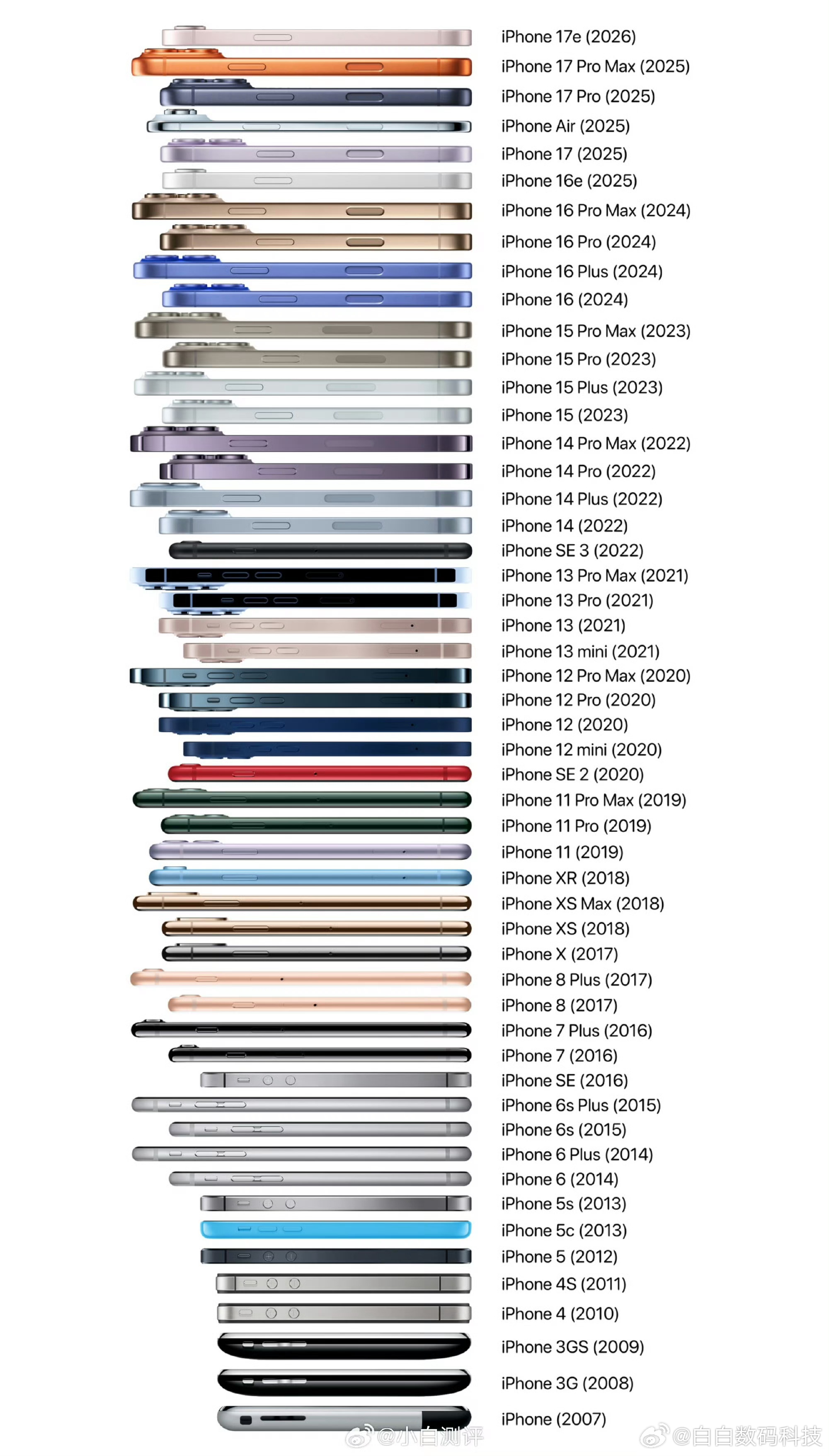 2007年初代iPhone ~ 2026年iPhone 17e苹果所有iPhon
