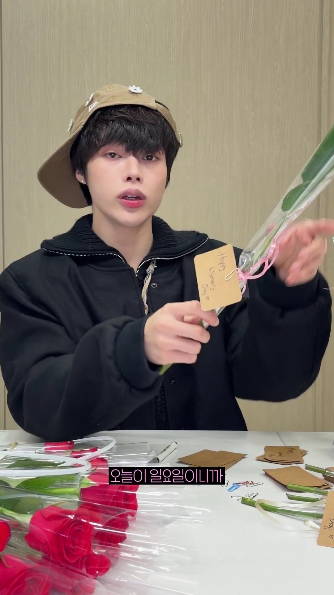 女神节给所属社加班中的女职员们送去了鲜花和马卡龙的爱豆(feat. TEMPEST Hanbin)