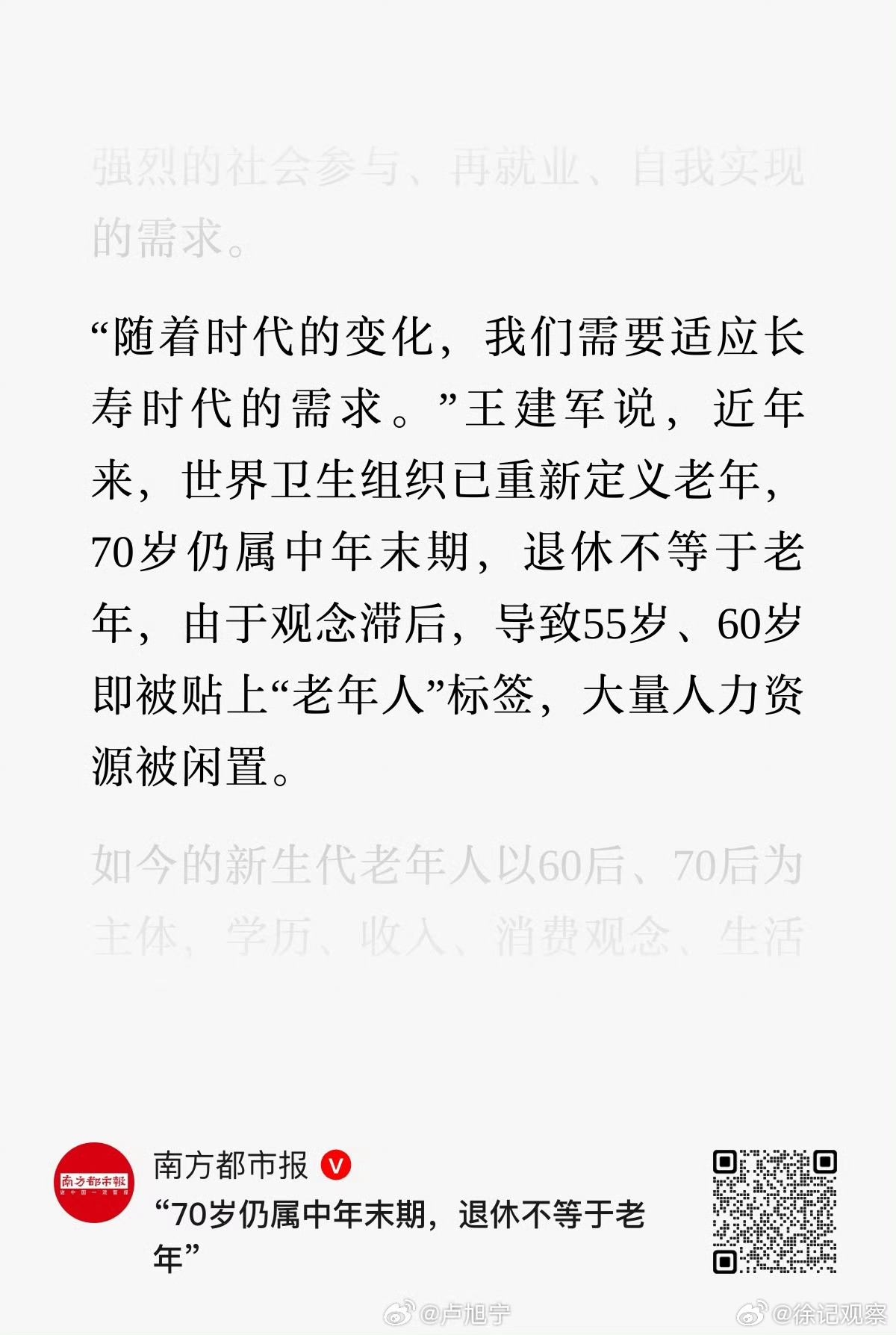 等这位去企业工地上一个月班再回来说这种话。何不食肉糜的感觉太重了。我采访过好些70后的建筑工人,人家身上各种酸痛伤病。心心念念想退休。你还让人家60岁后继续打工?