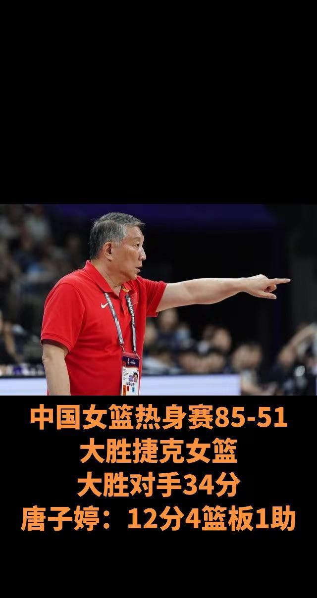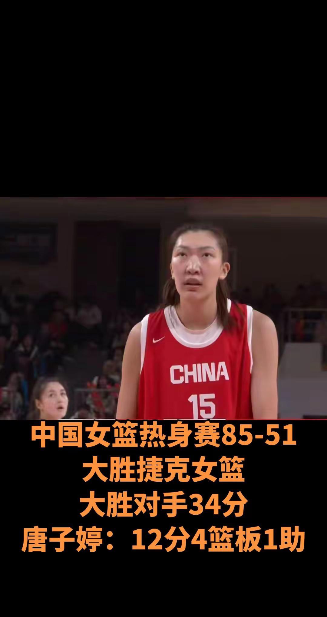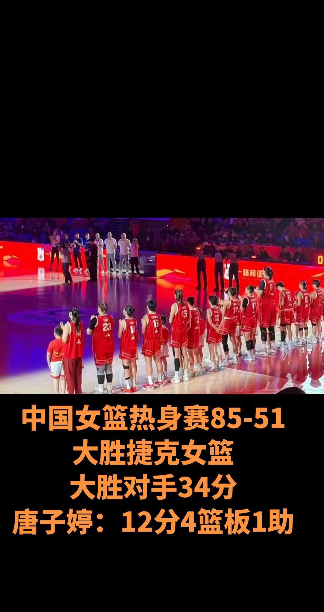 中国女篮热身赛85-51大胜捷克女篮。中国女篮热身赛85-51大胜捷克女篮大胜对手34分唐子婷:12分4篮板1助
