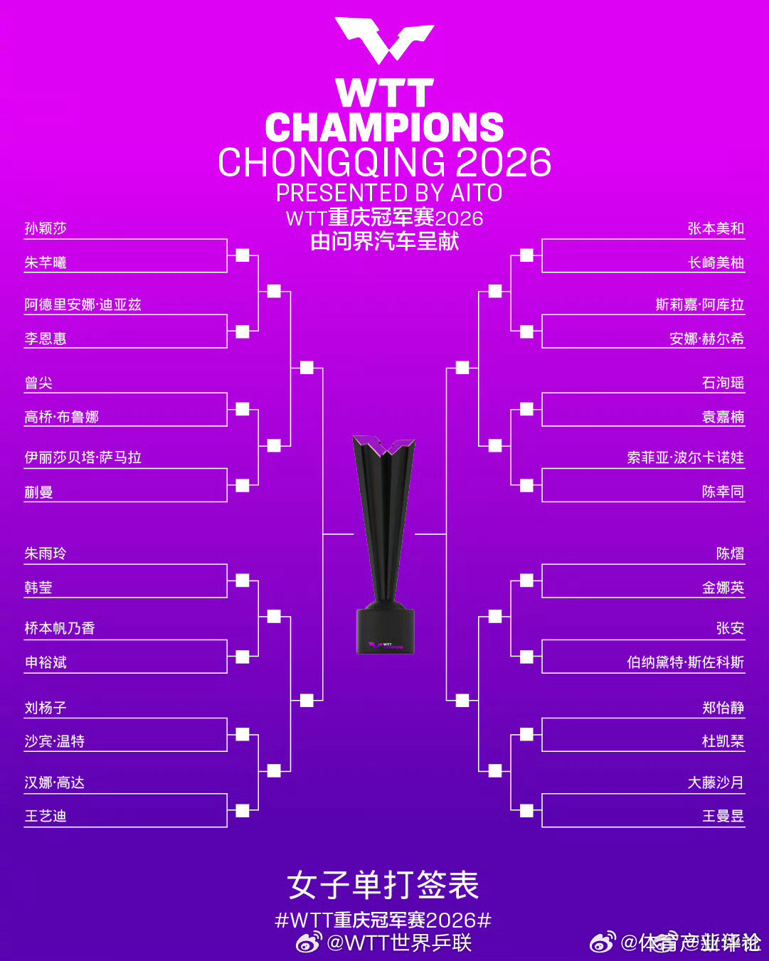 王楚钦拍签表WTT重庆冠军赛签表来了朱雨玲与韩莹这两位老将再次交手,看看这次谁能