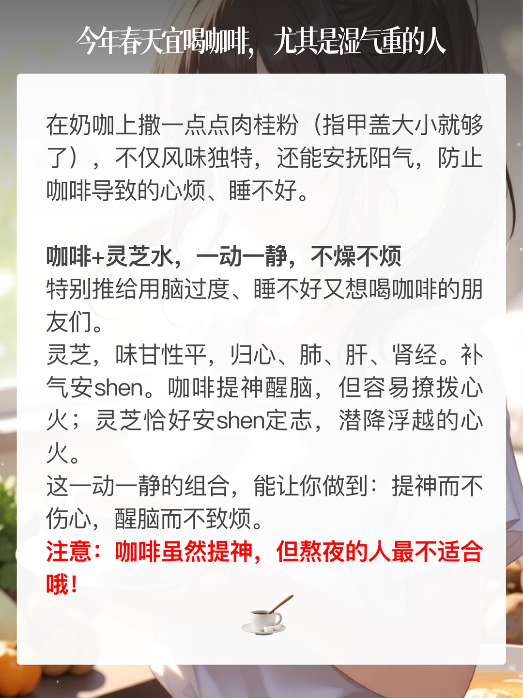 同样是咖啡,有的人越喝越精神,有的人却越喝越累?心悸、睡不着还容易上火口干…… 其实,不是咖啡不好,是你没在对的时间,用对的方式喝它。 今天,我们就来聊一聊咖啡,怎么喝更养人~