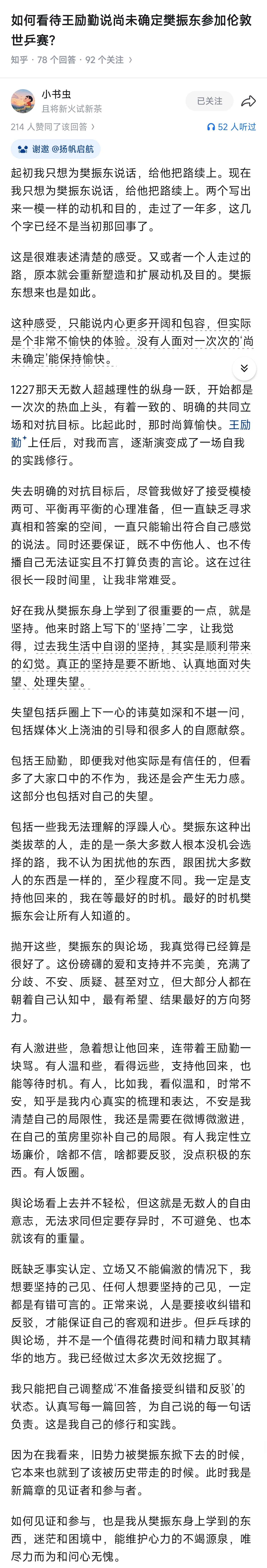 能与之共鸣的一篇文章。樊振东他是创造价值之人,而非依附之人。