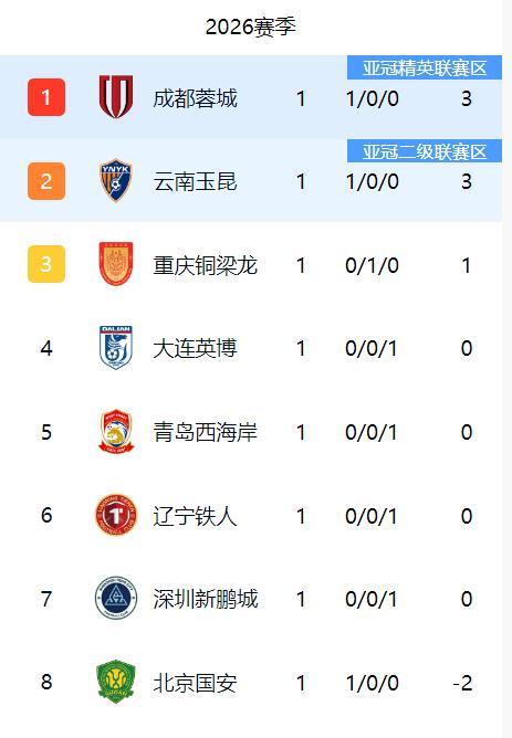 2026中超首轮比赛引爆“填坑大战”,蓉城5球屠榜,卫冕冠军海港爆冷翻车,申花主场狂胜大连,泰山3:0力压铁人。 中超首轮比赛已经全部结束,从第一轮比赛中我们可以看到中超开始大打对攻战,球队很少摆大巴防守了。 揭幕战:蓉城5-1血洗深圳。凤凰山主场化身“屠宰场”,成都蓉城新援拜合拉木弑旧主,冬窗重组的深圳新鹏程防线崩盘。功勋队长周定洋重返故地却遭旧主碾压,蓉城三外援齐破门,首秀即亮剑! 以-10分起步的申花主场迎战大连英博,上演进球大战。特谢拉、阿奇姆彭领衔的锋线三度被追平后爆发,最终5-3险胜。 泰山3-0力压铁人 李金羽率升班马重返济南,却遭老东家泰山当头棒喝!谢文能闪电破门,克雷桑点射+泽卡捡漏,全场仅35%控球却7射进3球,效率碾压辽宁铁人12射0正!泰山填坑首胜,积分从-6变为-3分 最大冷门:河南2-1掀翻海港 卫冕冠军主场翻车!武磊复出难救主,河南队钟义浩闪电破门+迈达纳头槌制胜。海港超级杯失利后再遭重击,积分-5分垫底中游 2026中超注定载入史册:扣分潮重塑争冠格局,外援依赖症加速联赛技术断层,升班马重庆队以性价比阵容挑战豪门秩序。蓉城的华丽进攻、海港的卫冕崩塌、申花的保级长征——首轮已埋下所有伏笔。