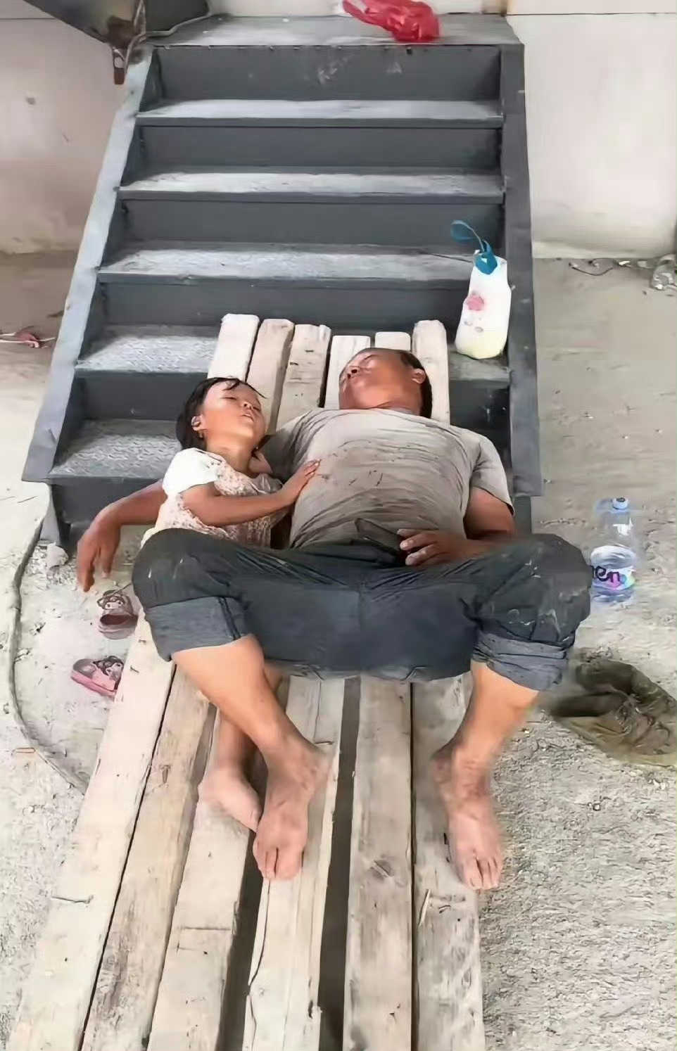 39℃里孩子陪父亲午休,不吵不闹没有玩具,只有疼爱他的父亲。这样的孩子以后应该很孝顺父母吧