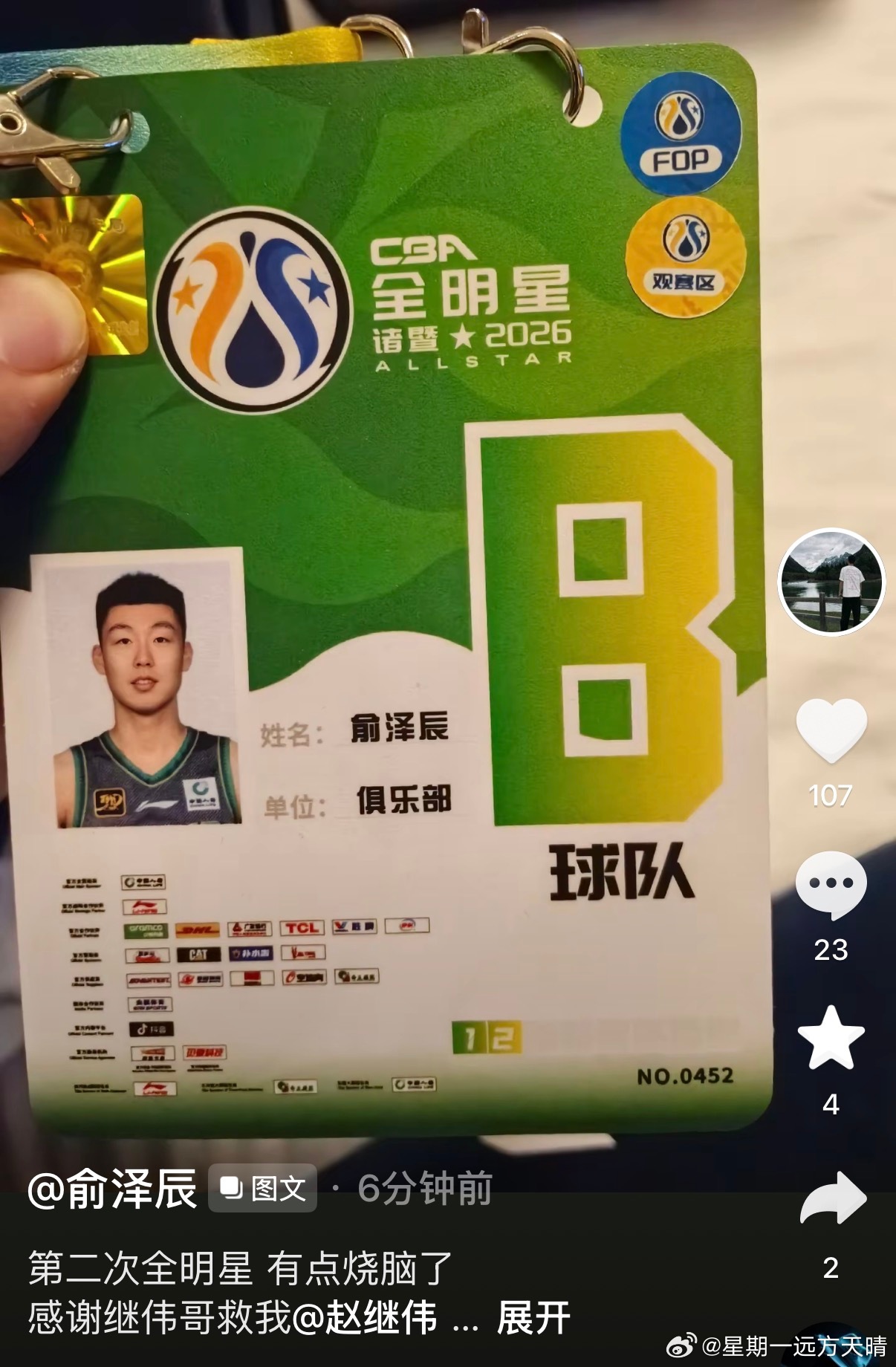 cba全明星周末扣篮大赛俞泽辰 大牙:第二次全明星,有点烧脑了
