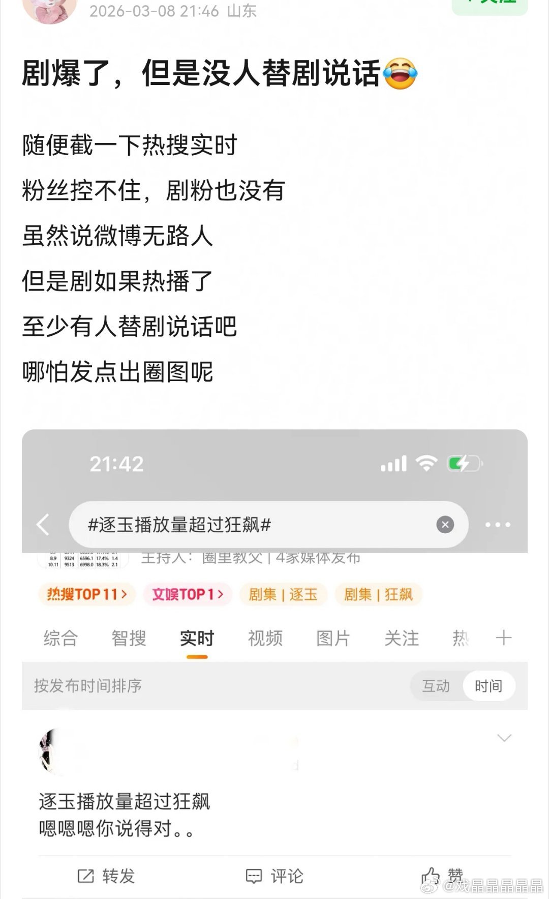 逐玉走势视组有人担心平台收不住,玩脱了,目前没看到太多剧粉出来说好话。
