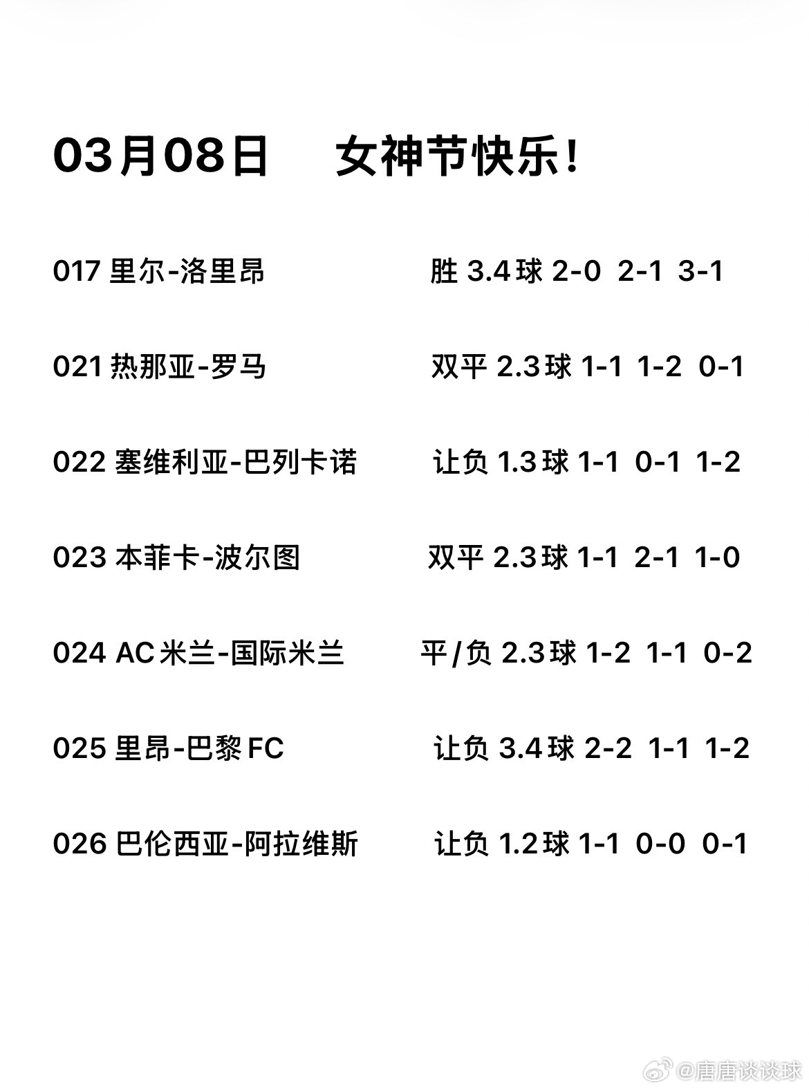 3.8女神节快乐!昨日超级大满贯满堂红,大方向7✔7,笔芬7✔4!今日早场又是双双拿下全虹,状态爆满!晚场继续冲击好评!ac米兰vs国际米兰热那亚vs罗马本菲卡vs波尔图足球赛事分析足球比分
