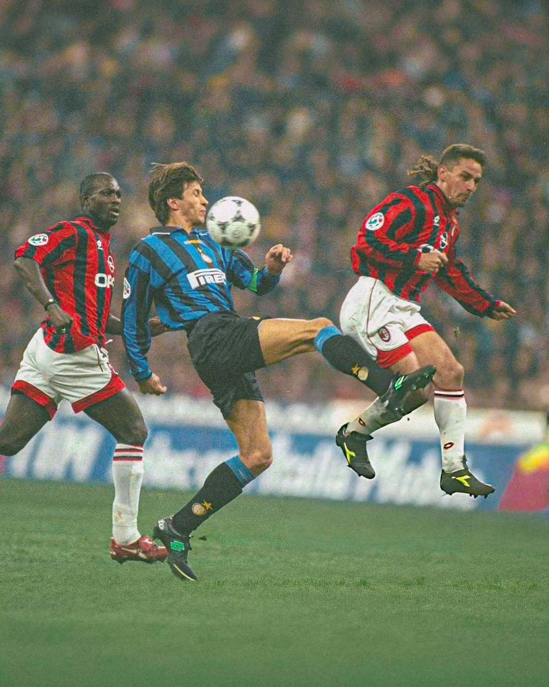 这才是德比!90年代的米兰德比无可替代 🔥⚫🔵🔴球员拼尽全力,球迷声嘶力竭,场面震撼无比。恩怨、荣耀、梦想,全都在这片球场绽放。90年代足球,永远有独特的魅力。⚽ac米兰vs国际米兰