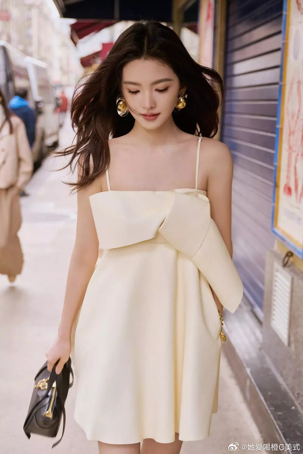章若楠穿吊带裙性感优雅 长发微卷眼神撩人又纯又欲