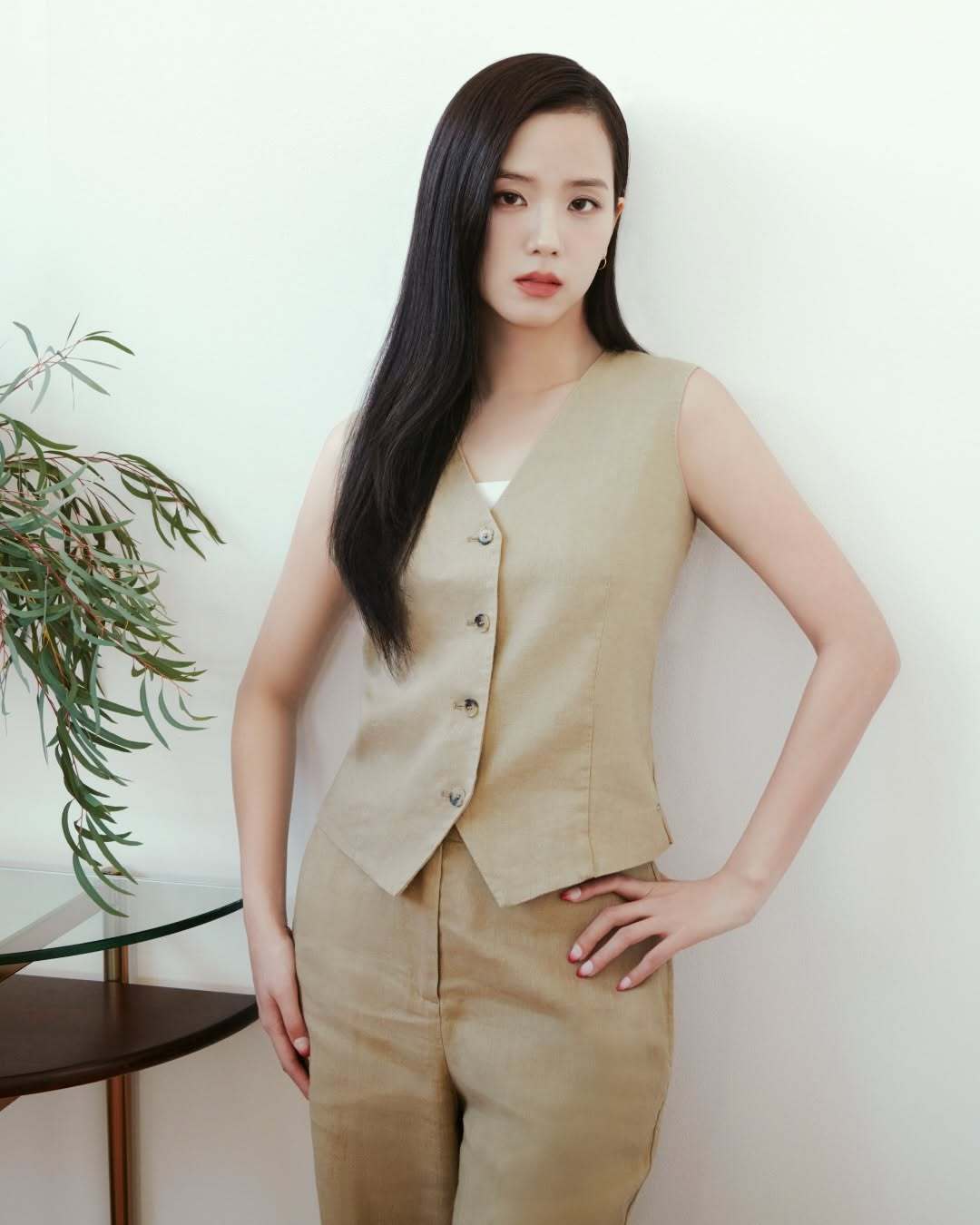 刘亦菲这条裤子挺养生,毕竟降温了肚脐眼必须护住啊