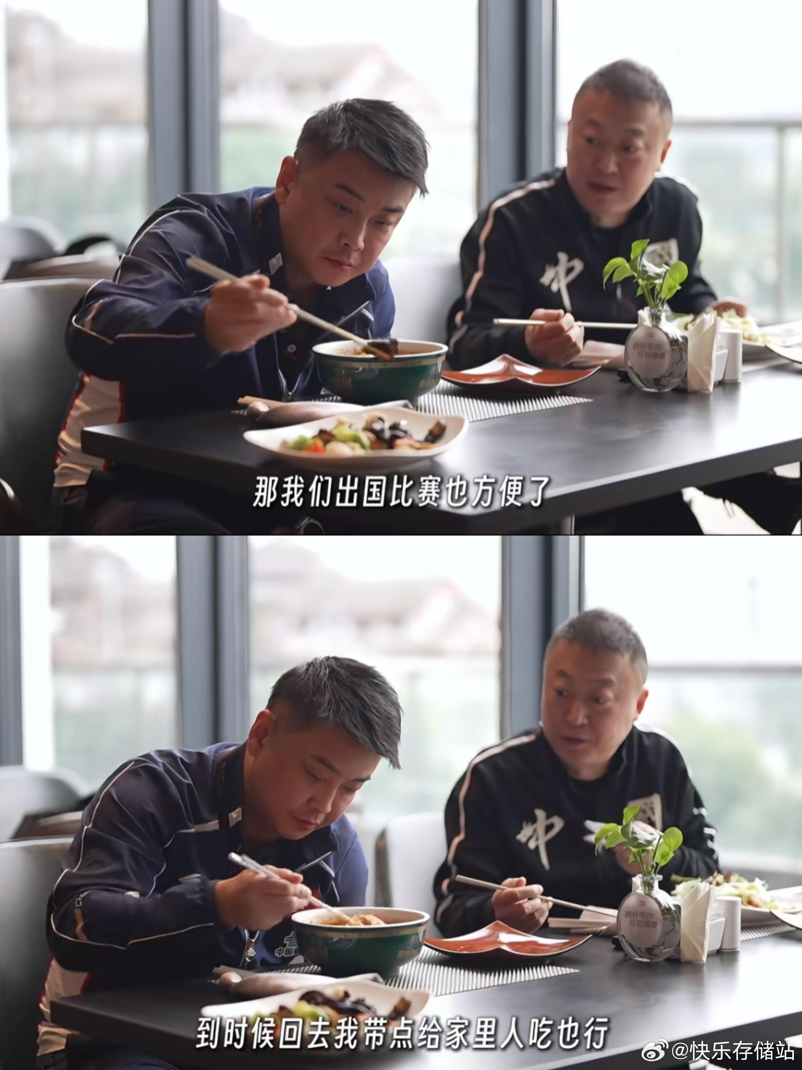 这俩难得和谐的一幕,先替大头吃上肉了|||下午抽签的时候,王楚钦说吃肉。这不白告
