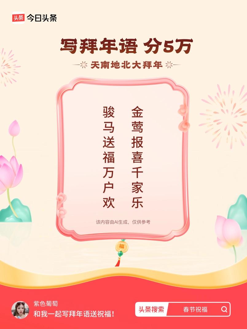 写拜年语送祝福新春拜年送祝福!我的祝福是:“骏马送福万户欢,金莺报喜千家乐”!快