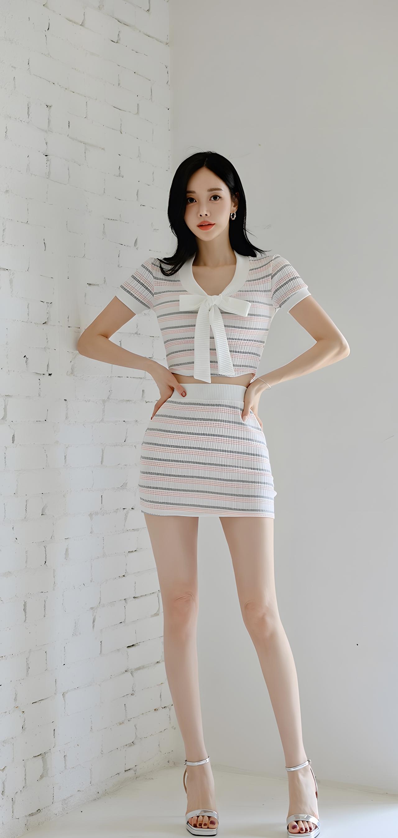 甜美条纹连衣裙,搭配白色高跟鞋,轻松打造夏日清新造型!🌞👗👠