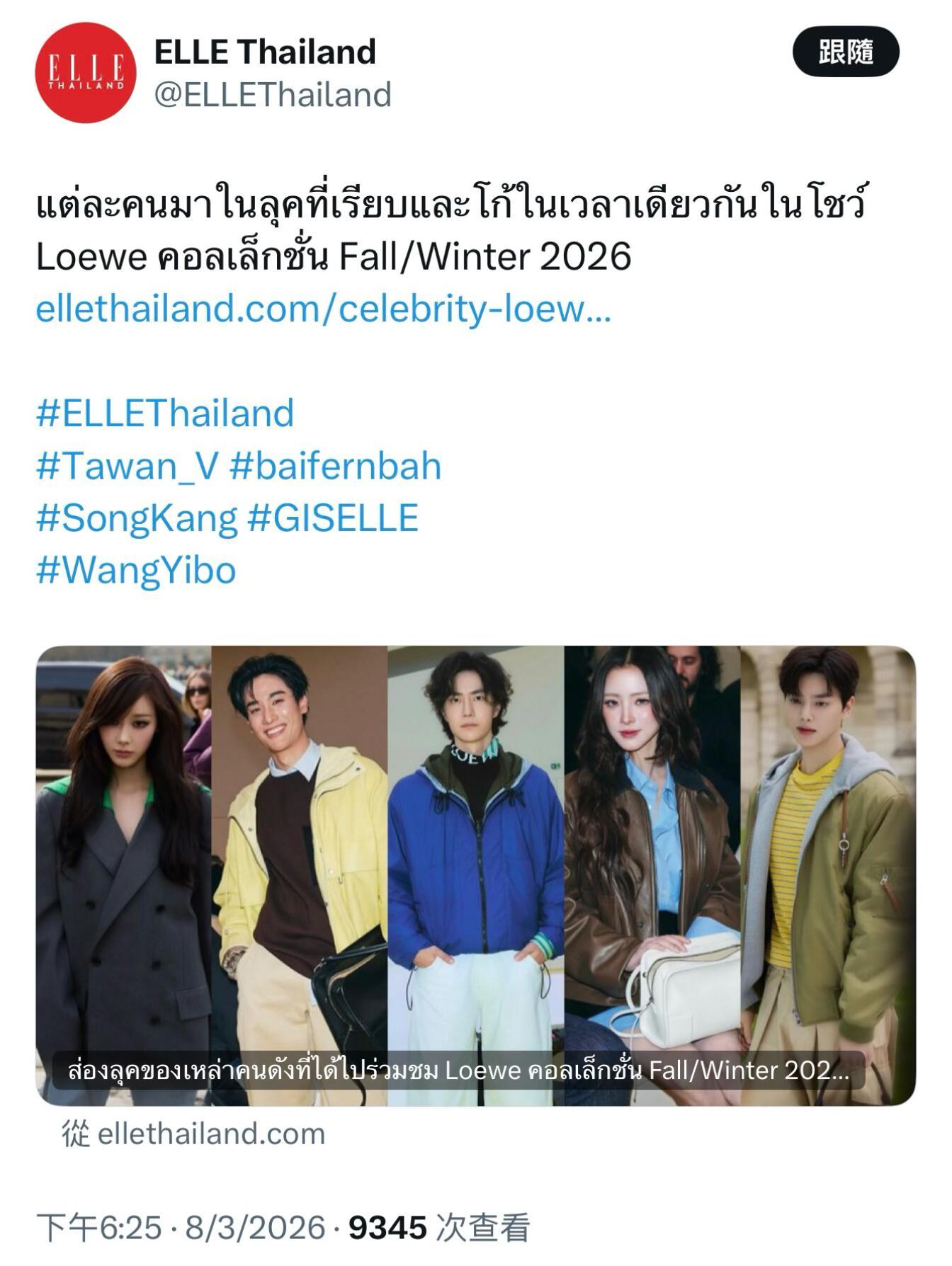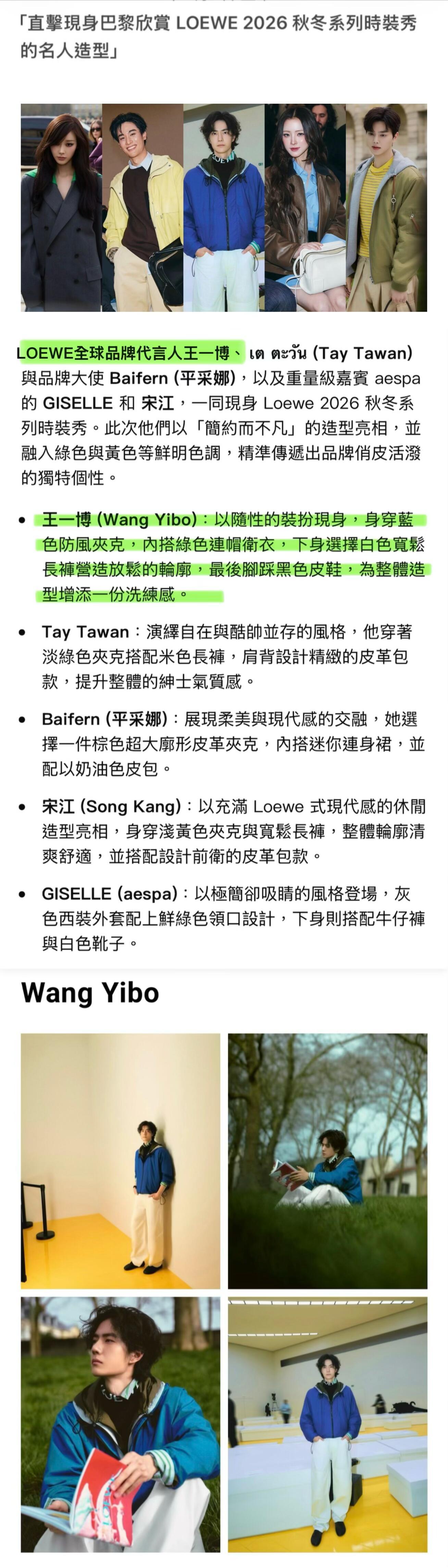 EllE Thailand报道罗意威巴黎时装周大秀王一博大C位王一博