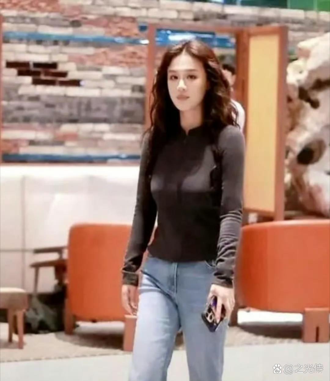 刘亦菲这条裤子挺养生,毕竟降温了肚脐眼必须护住啊