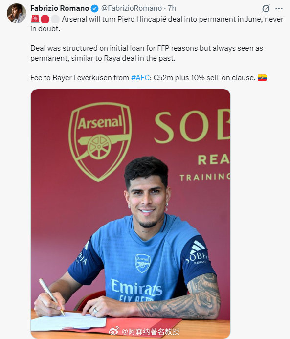 阿森纳将在六月份正式签下因卡皮耶,这一点毋庸置疑。这笔交易最初出于财政公平竞赛规则的考虑而以租借形式进行,但一直被视为永久转会,类似于之前签下拉亚的交易。阿森纳向勒沃库森支付的转会费为5200万欧元,外加10%的二次转会分成条款 英超联赛 阿森纳著名教授