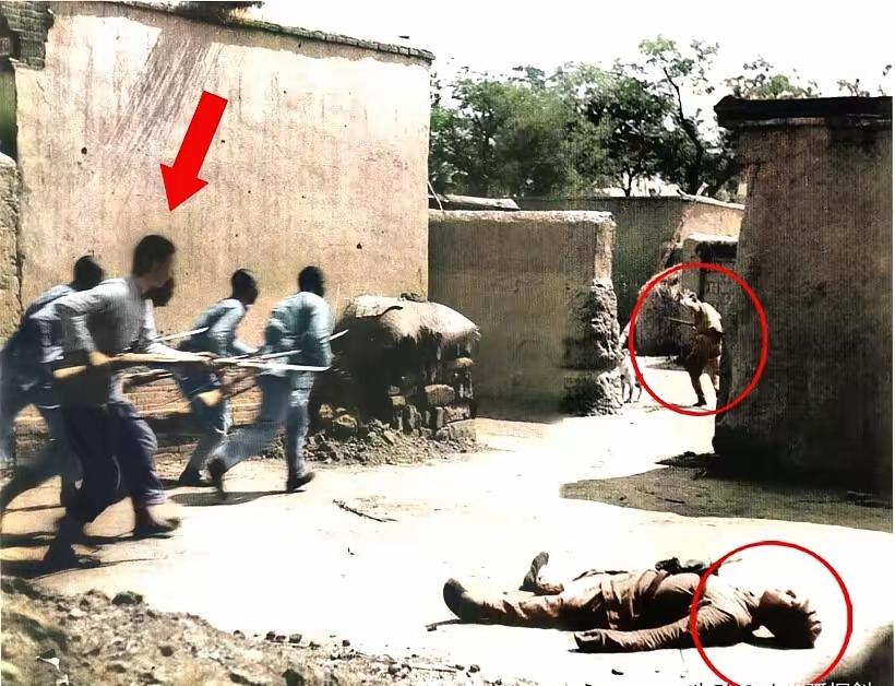 让我们瞧瞧那最解气的老照片,八路军正追击日本鬼子,其中一个已被打倒在地,另一个日本鬼子抱头鼠窜,想来也难以逃脱八路军的追击。日本鬼子所谓的狂妄不可战胜,不过是他们蓄意渲染的罢了。 抗战时期,在敌人的后方,我八路军武工队和游击队时常袭击小股敌军。到了战争后期,日本鬼子只能龟缩在据点里,不敢露头。我八路军游击队常常拔除据点、烧毁炮楼,把日本鬼子打得东躲西藏,他们已然成了瓮中之鳖。