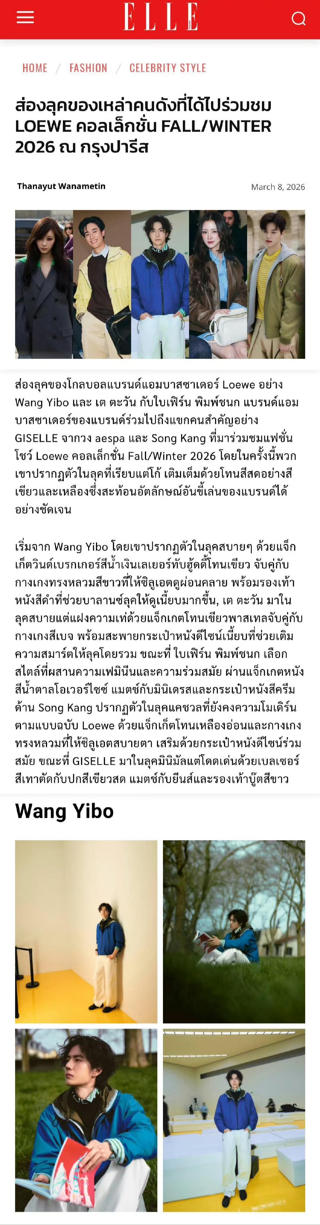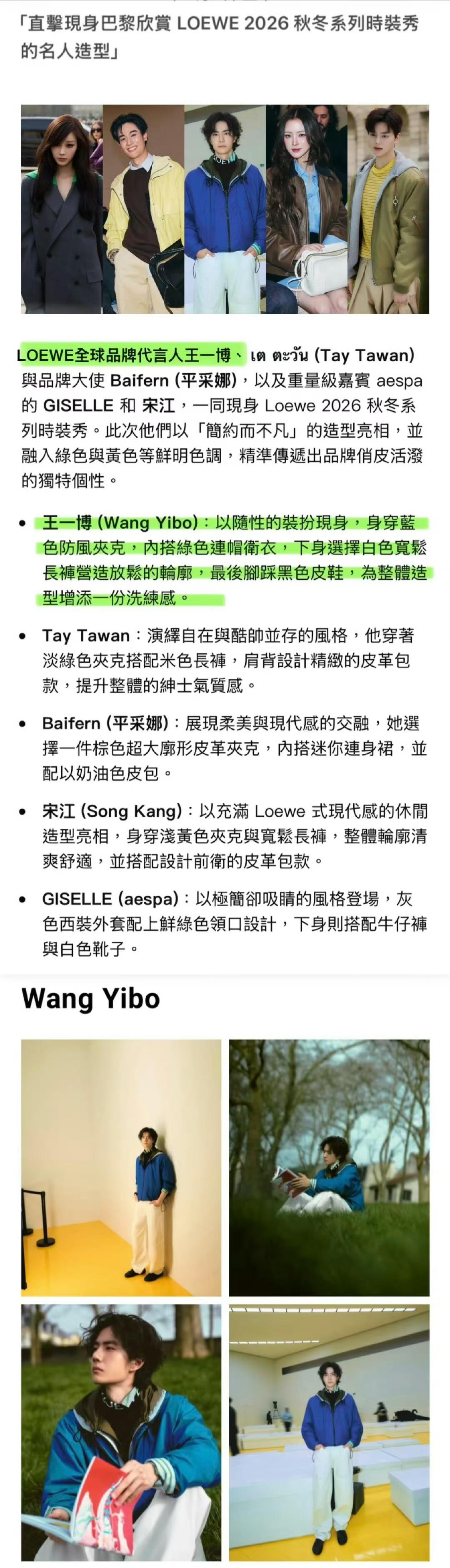 王一博,在VOGUE报道的巴黎时装周罗意威大秀中是一眼可见的大C位。 就是在泰国杂志上,王一博也照样力压泰星, EllE Thailand报道罗意威巴黎时装周大秀,王一博稳稳大C位。 王一博的时尚地位,就是这么顶,早已经不限于内娱的顶。 王一博