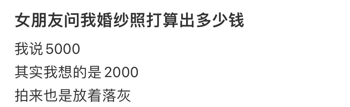 女朋友问我婚纱照打算出多少钱