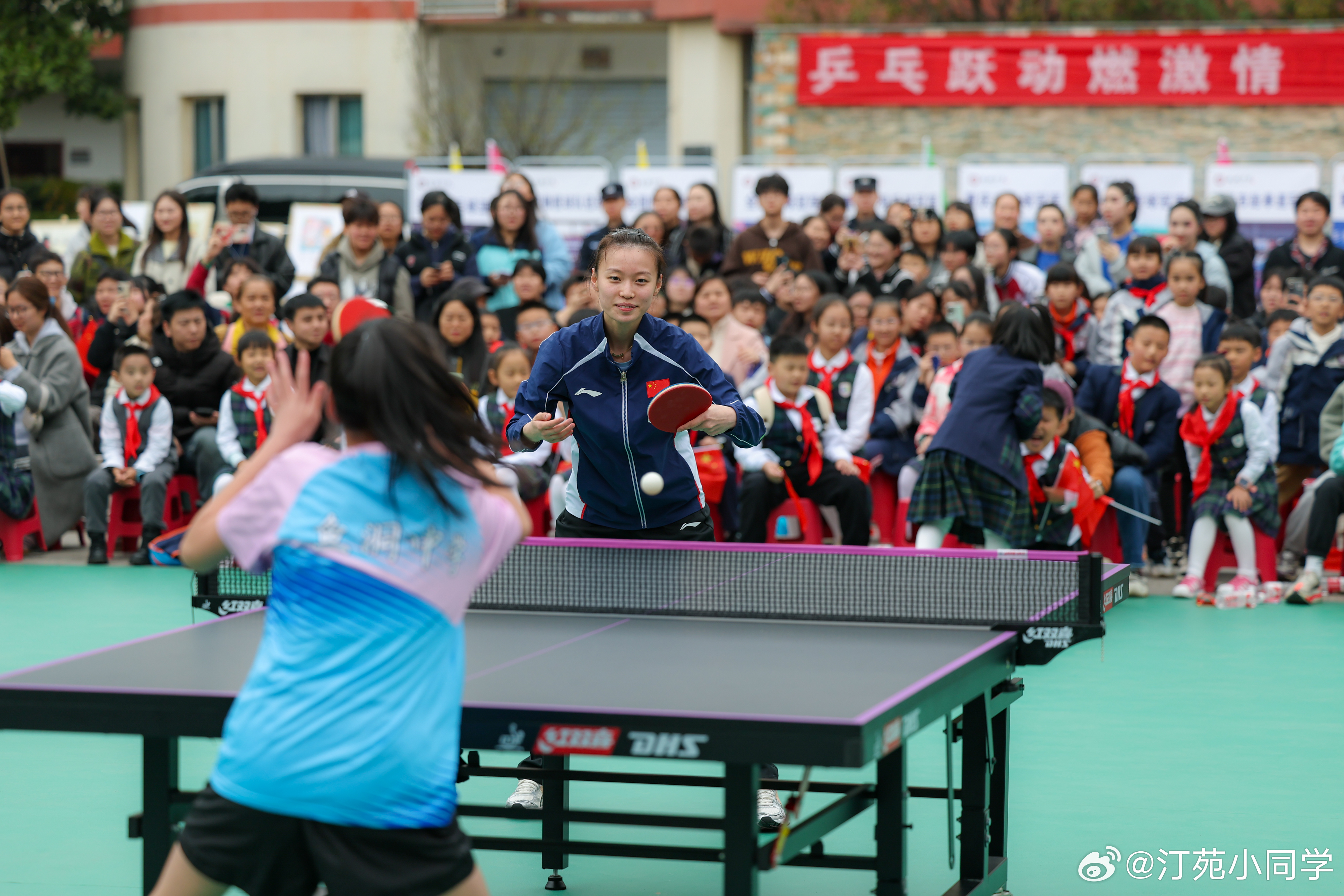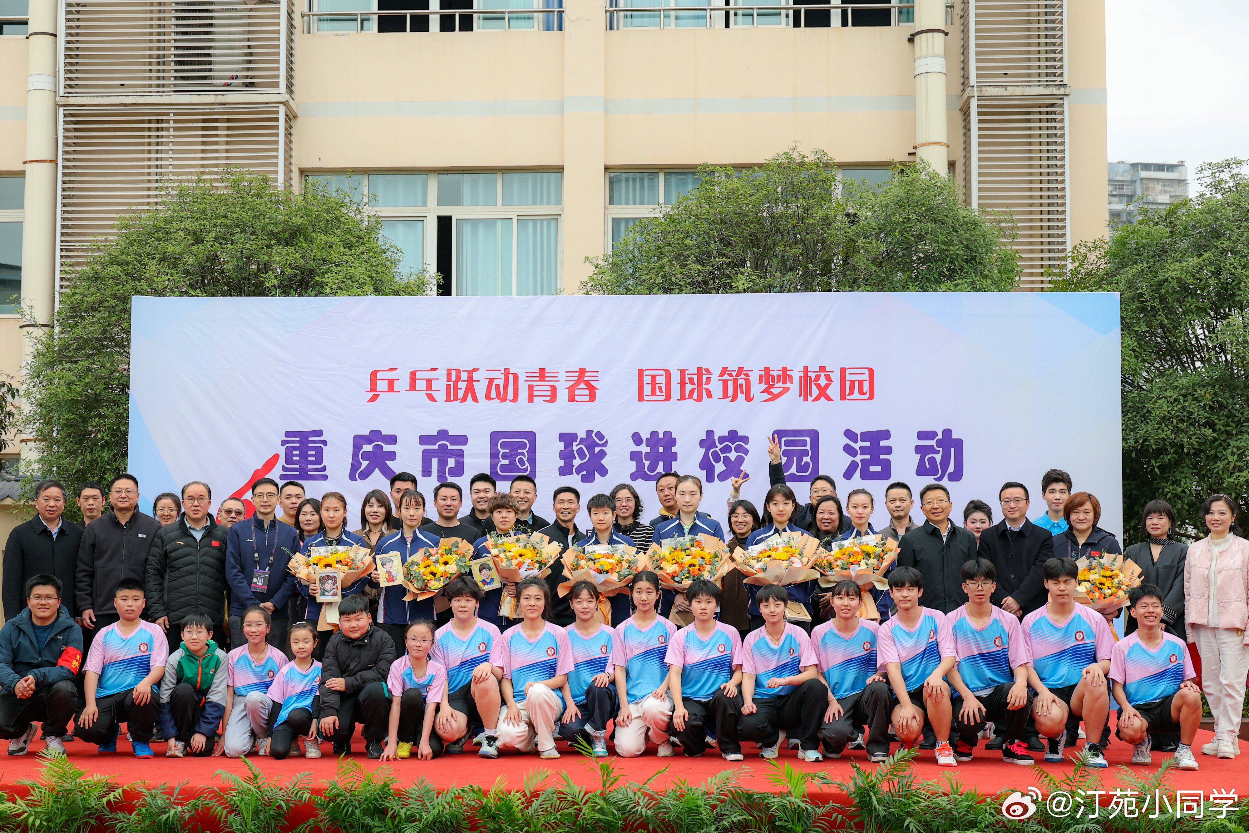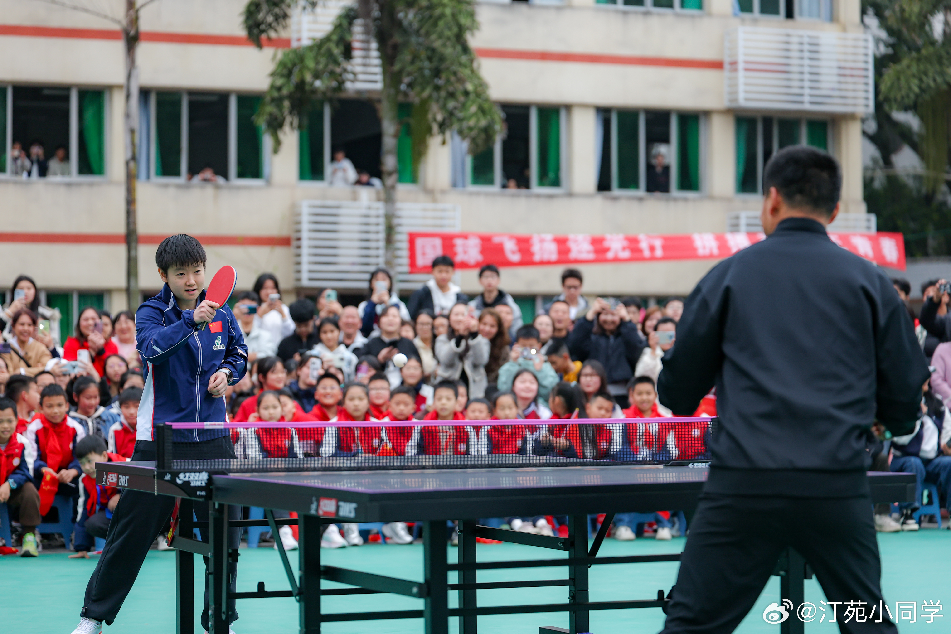 国乒女队走进重庆鱼洞中学,与鱼洞中学教职工代表交流球技。孙颖莎、王艺迪、王晓彤、石洵瑶、杨惠泽等参加了活动。wtt重庆冠军赛2026 (新华社)