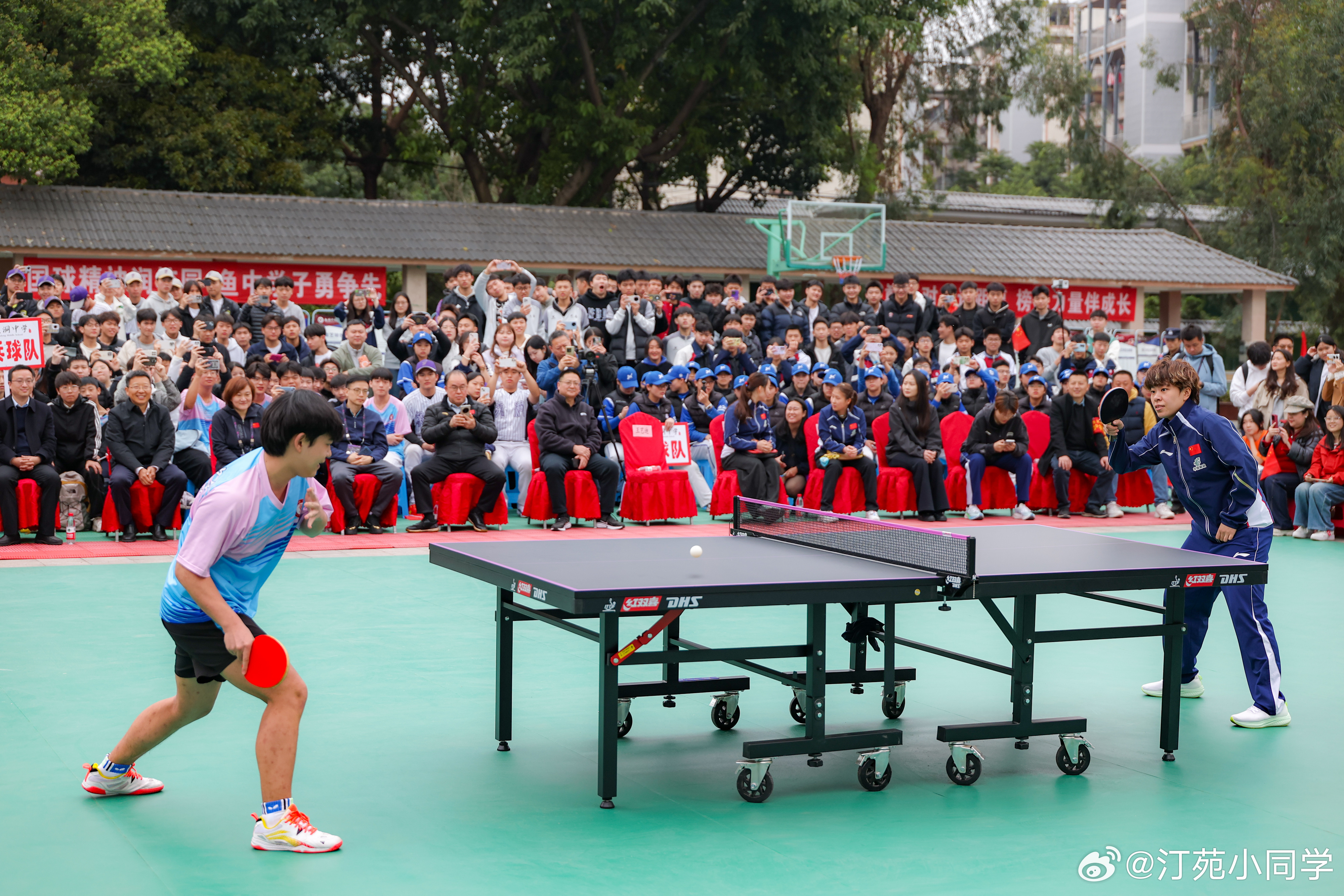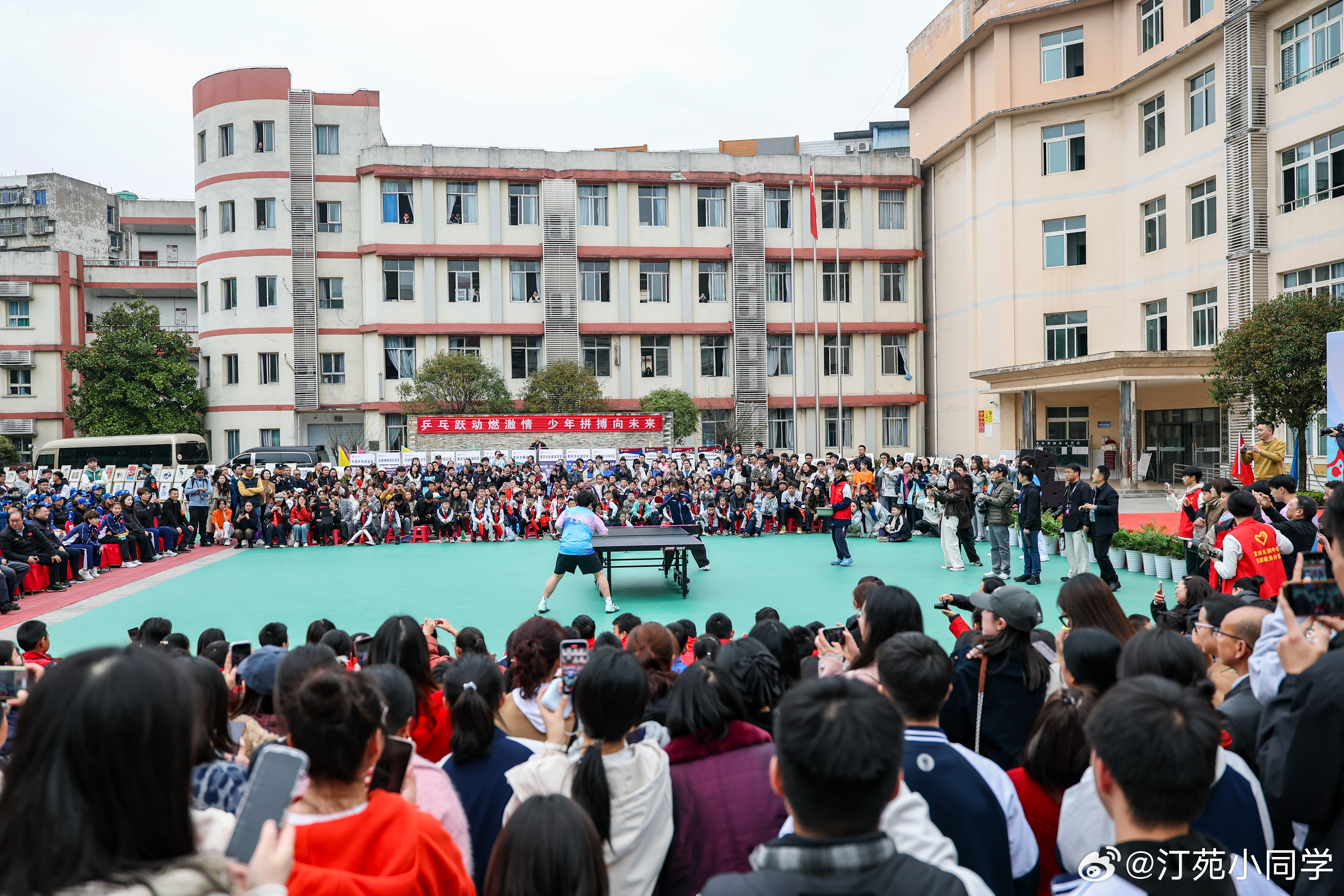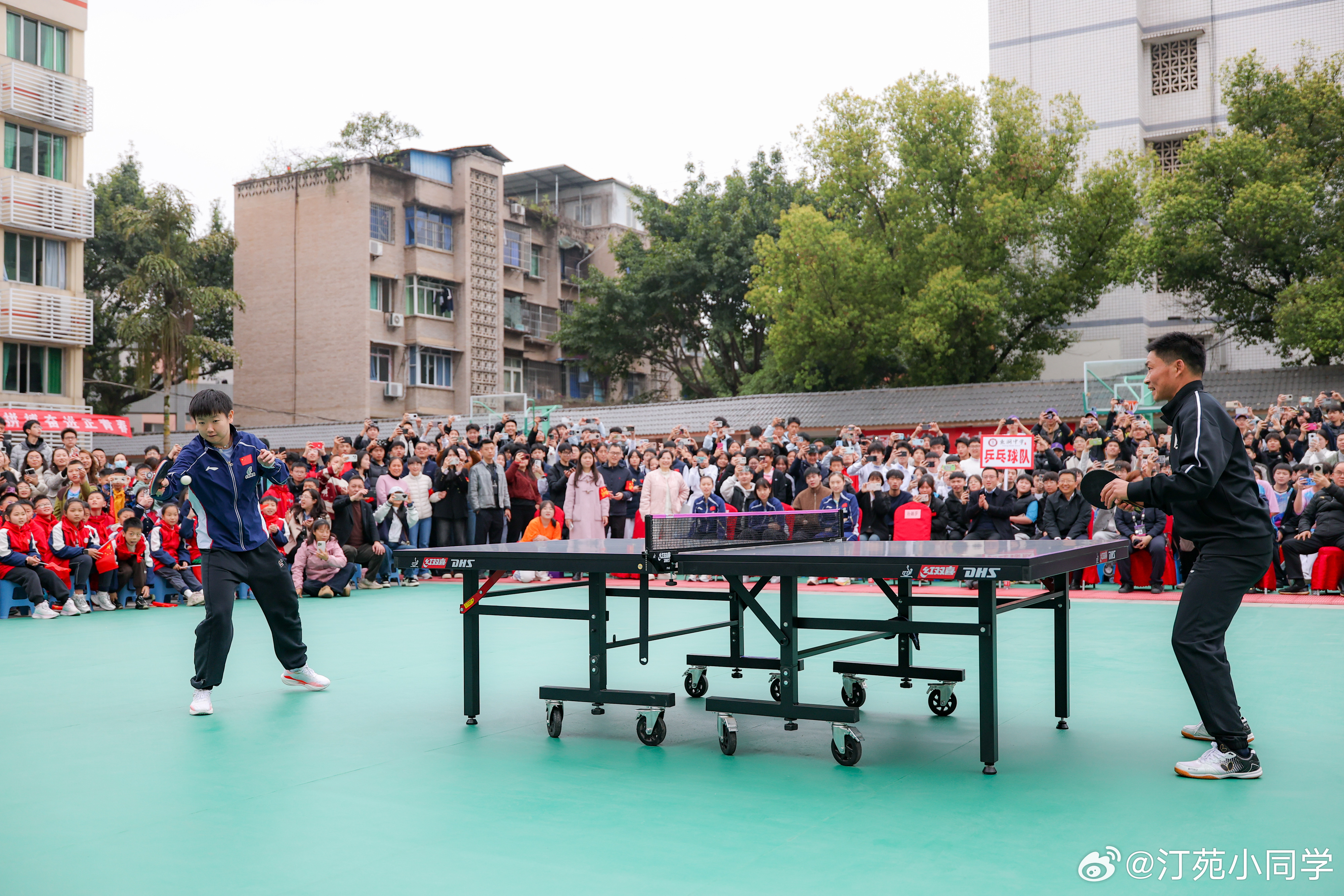 国乒女队走进重庆鱼洞中学,与鱼洞中学教职工代表交流球技。孙颖莎、王艺迪、王晓彤、石洵瑶、杨惠泽等参加了活动。wtt重庆冠军赛2026 (新华社)