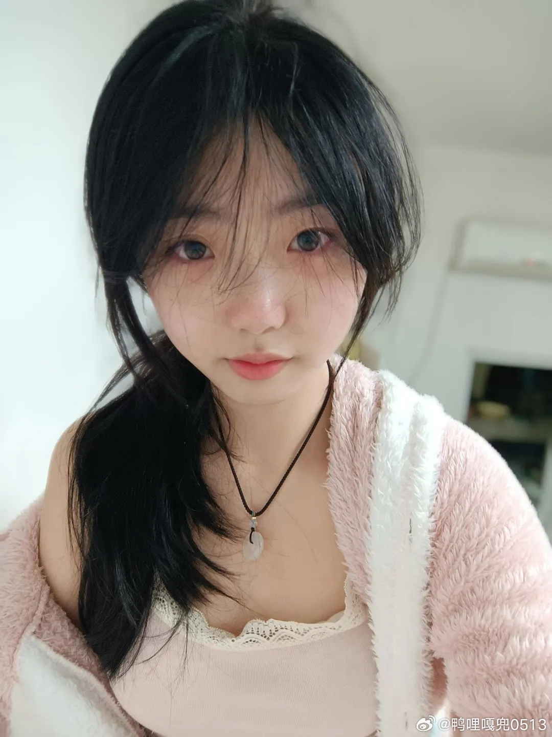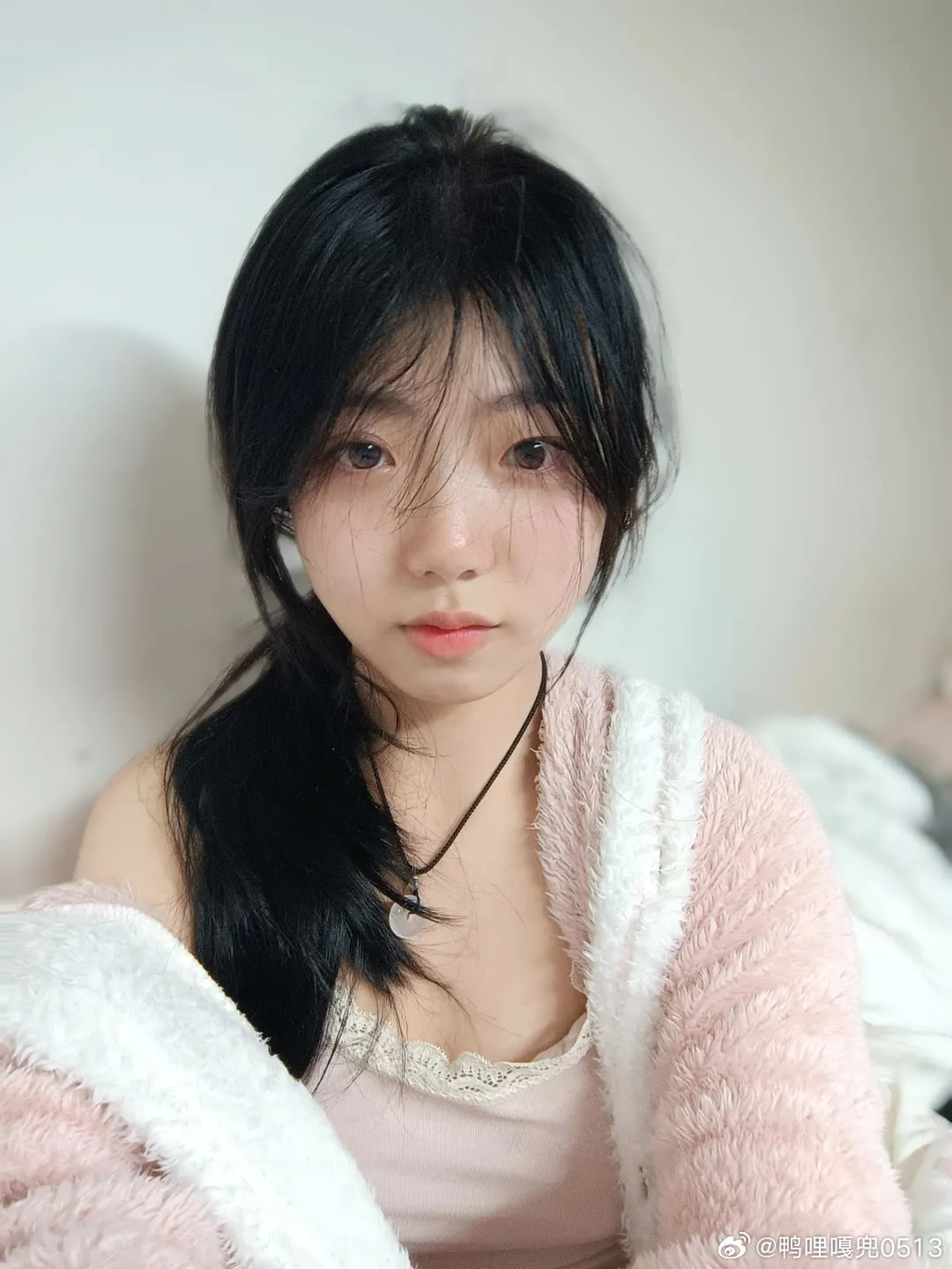 穿搭时尚穿搭今天穿什么ootd白色吊带背心和粉红绒睡衣