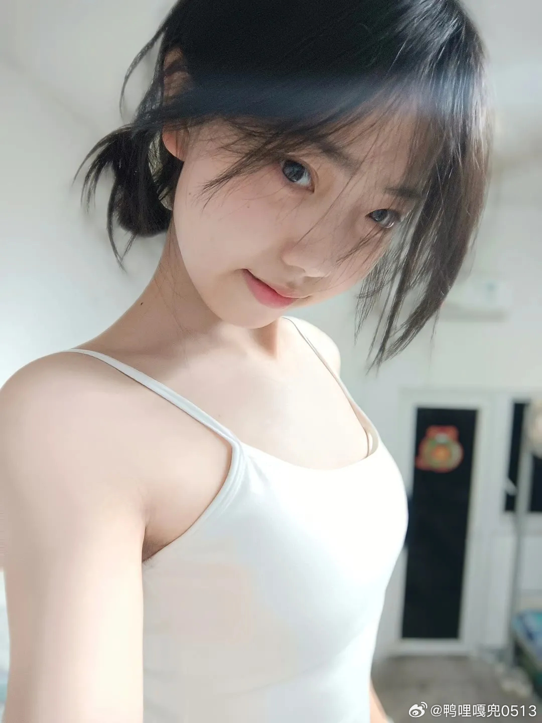 穿搭时尚穿搭今天穿什么ootd 白色吊带背心和粉红绒睡衣