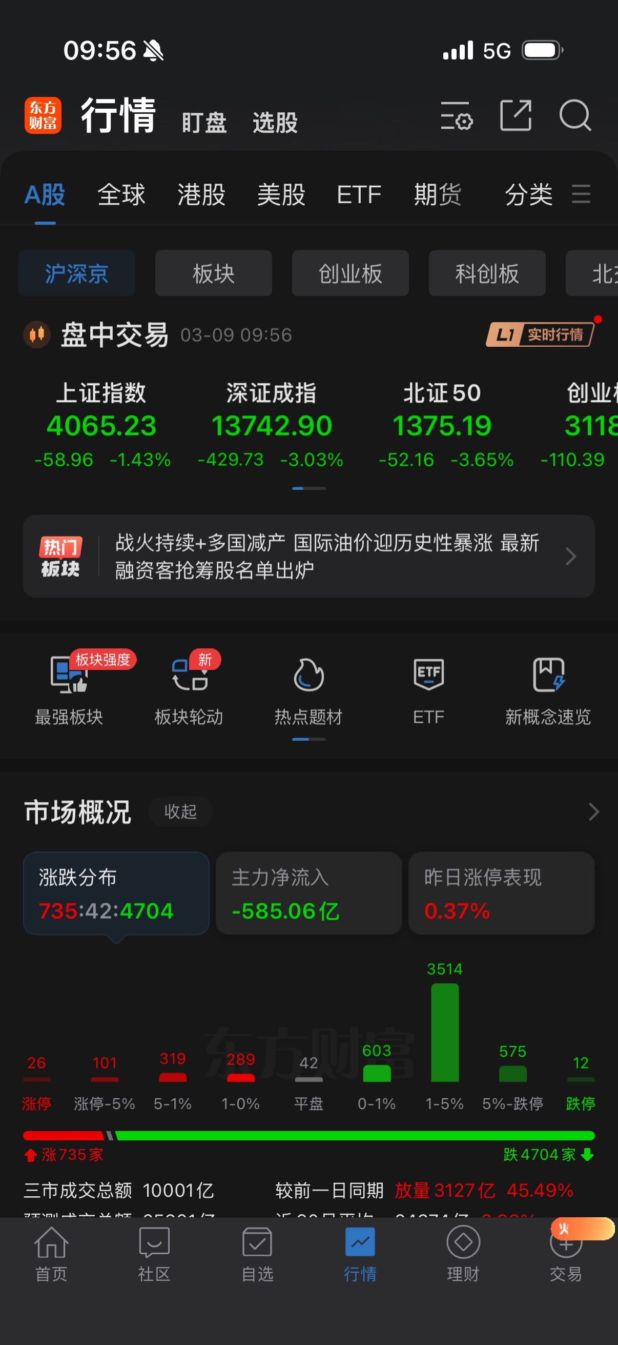 早盘A股受外围冲击显著,亚太市场集体低开大跌,叠加地缘冲突升级推动布伦特原油大涨,两市股指大幅低开后快速下探,再现“低开—探底—企稳”的经典走势。