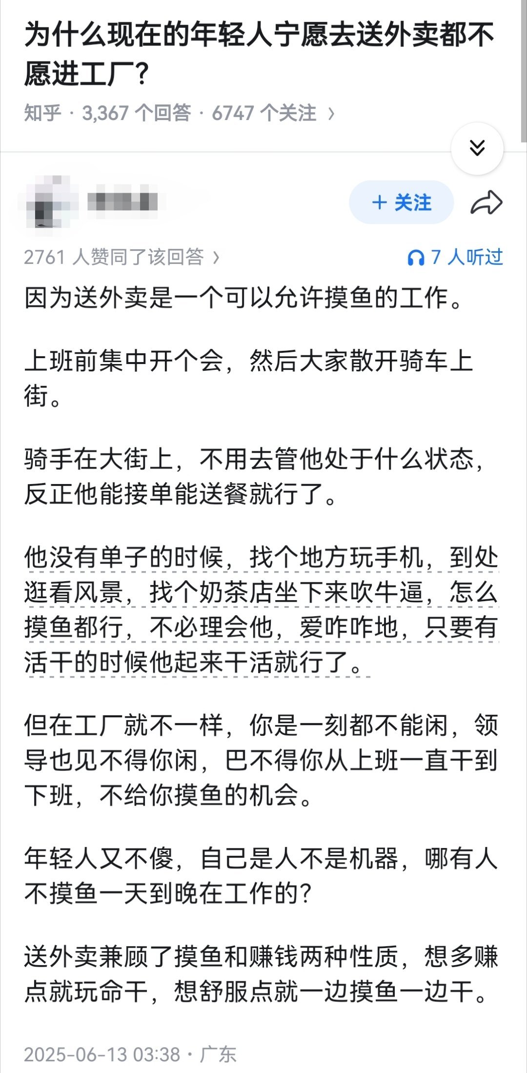 为什么现在的年轻人宁愿去送外卖都不愿进工厂?