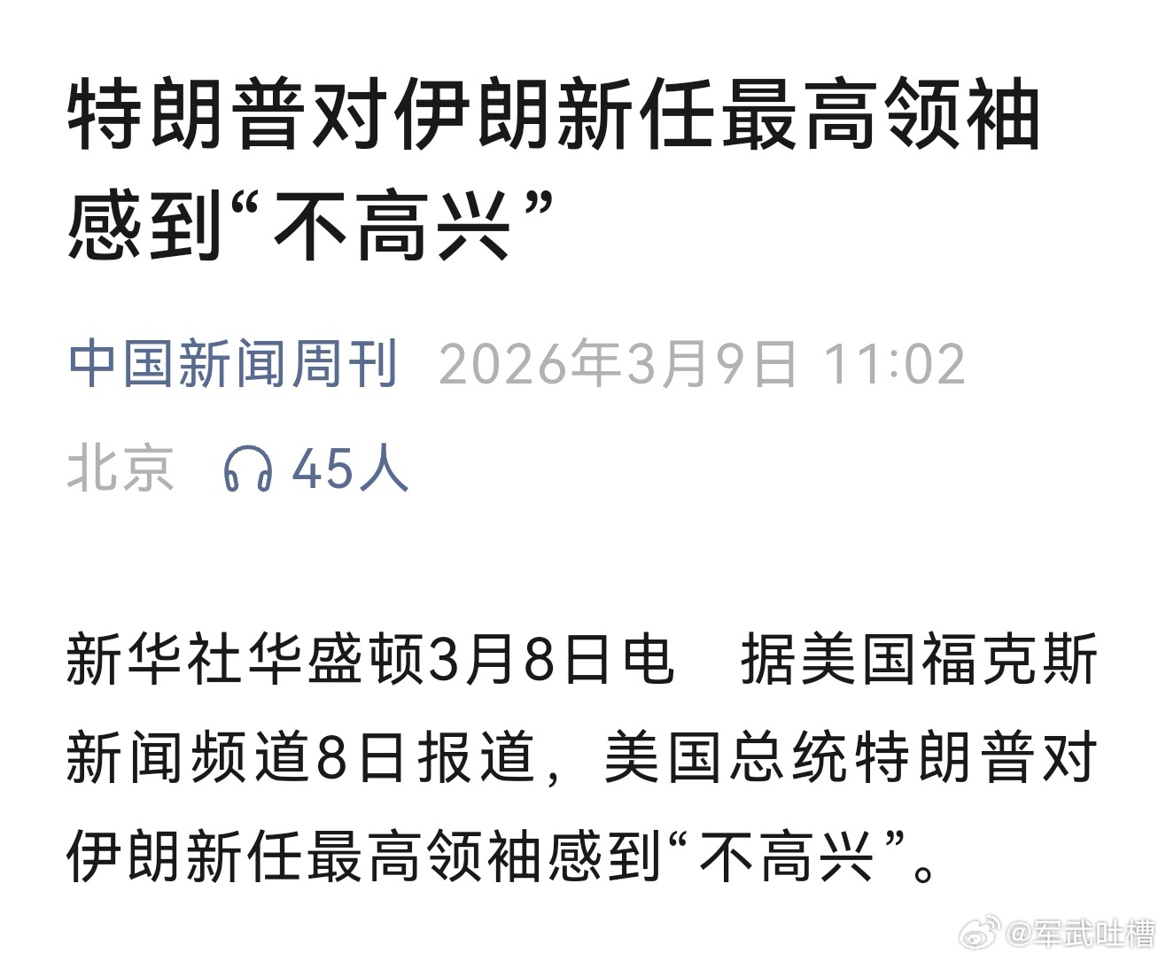 哈梅内伊之子接任最高领袖懂王不高兴了,以色列也不高兴,肯定再次组织斩首行动!考验伊朗情报和安保能力的时候又到了!如果最高领袖连续被暗杀,对伊朗国内的军心民心都将是巨大打击!哈梅内伊之子接任最高领袖美伊以冲突
