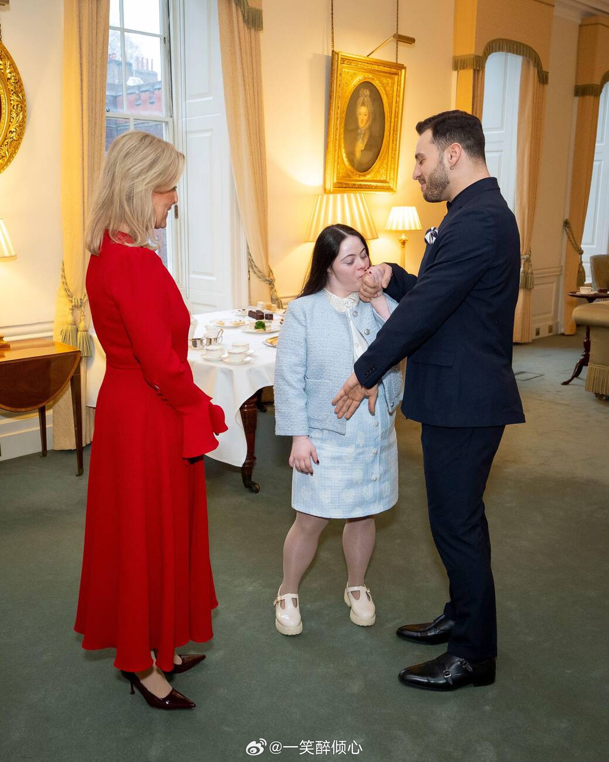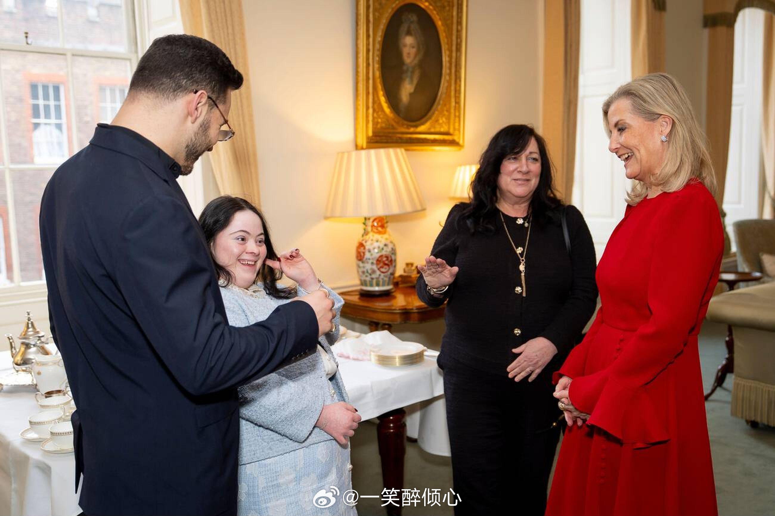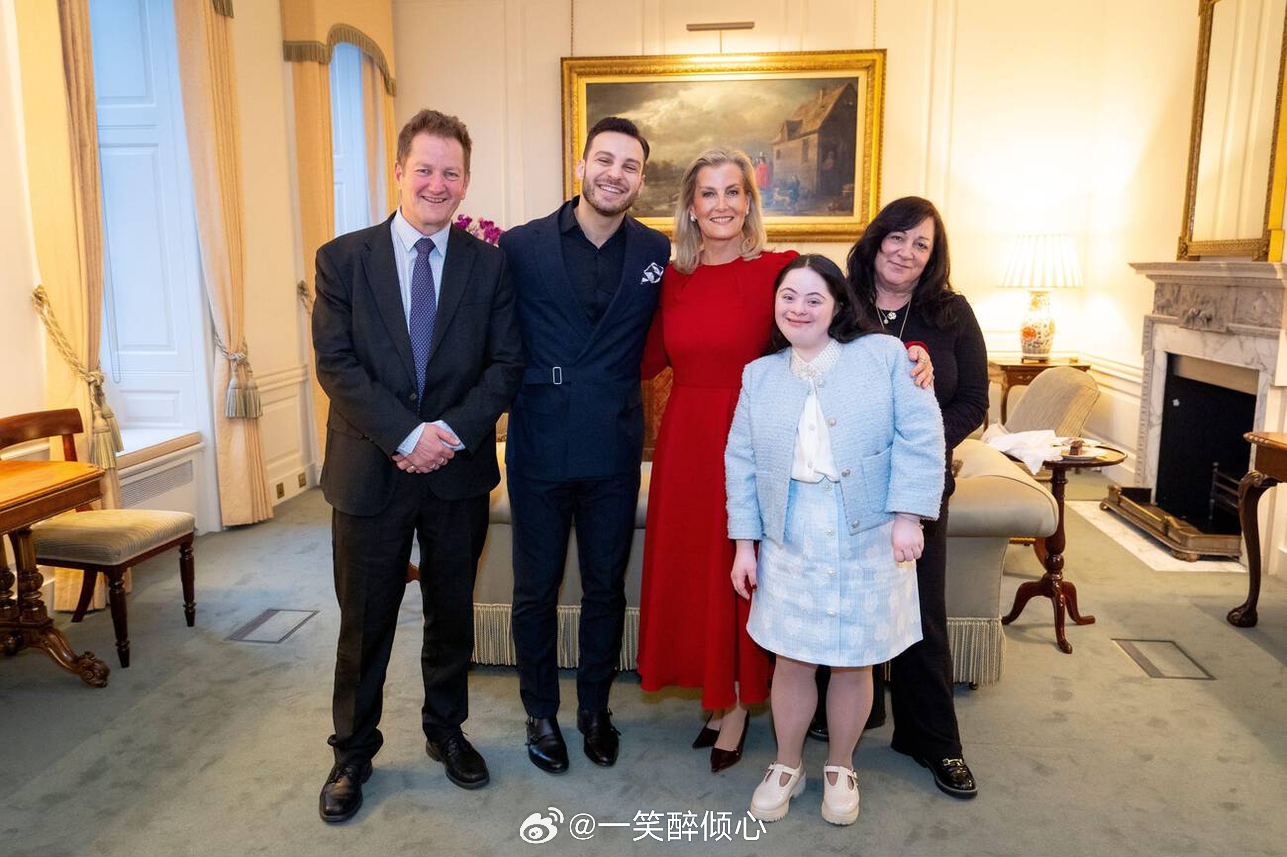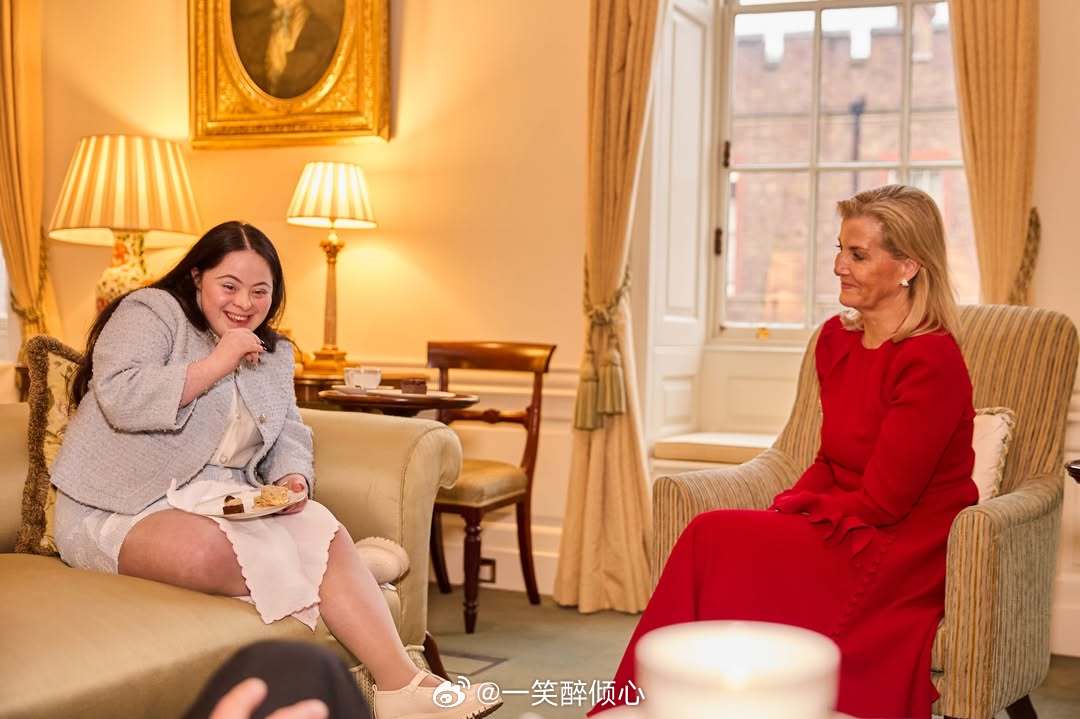 2026年3月4日,爱丁堡公爵夫人苏菲在伦敦圣詹姆斯宫举行下午茶会,招待关于学习障碍方面的慈善机构Mencap首席执行官Jon Sparkes、前《舞动奇缘》选手Ellie Goldstein和她的搭档Vito Coppola和母亲Yvonne Goldstein🪩