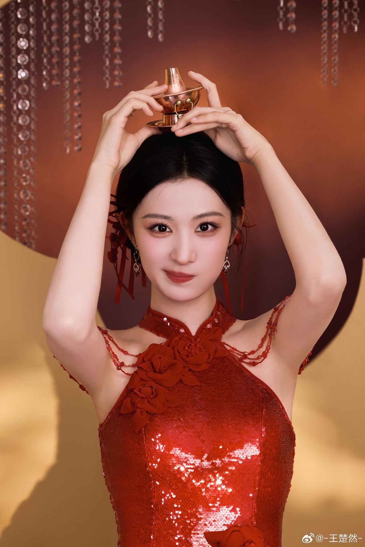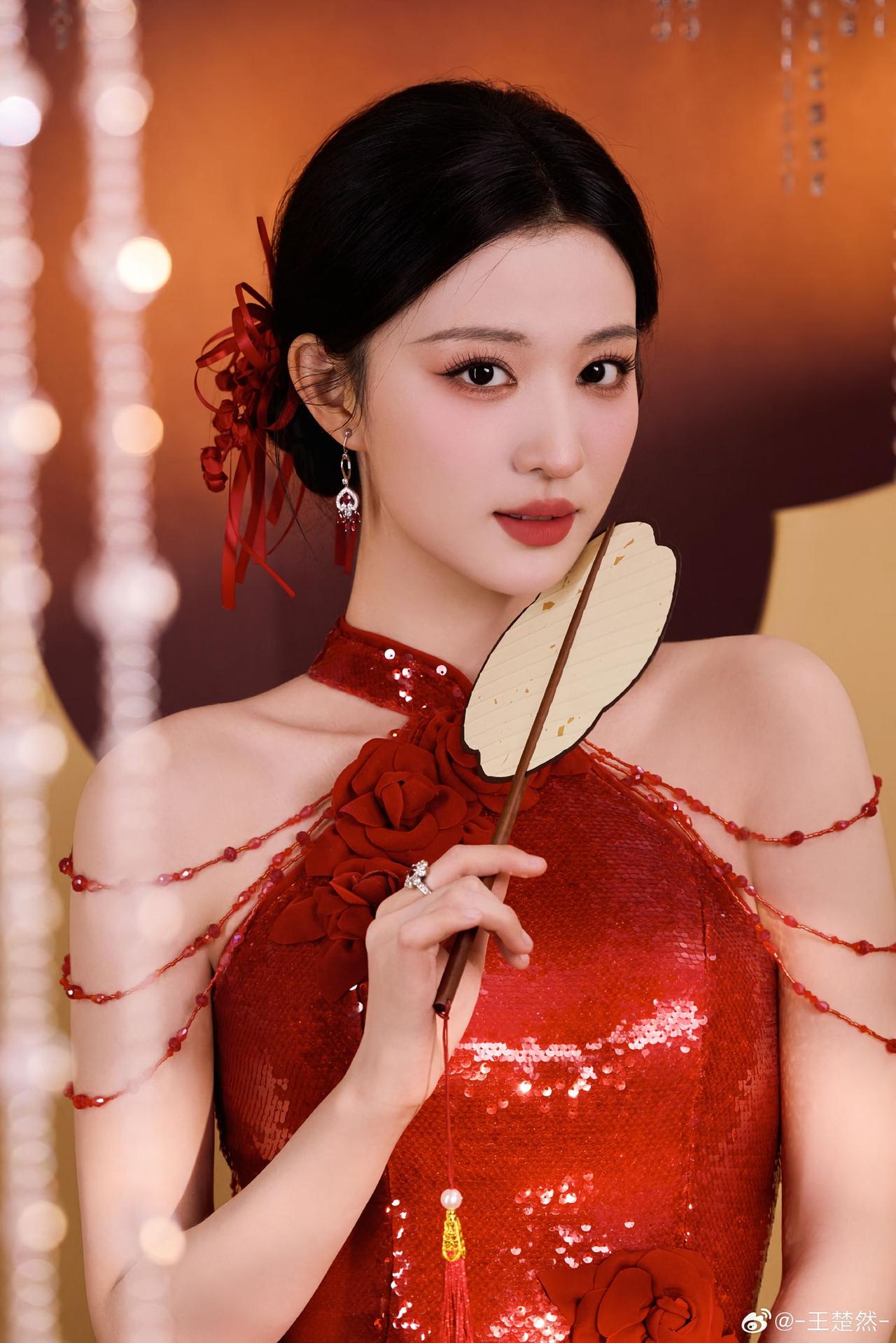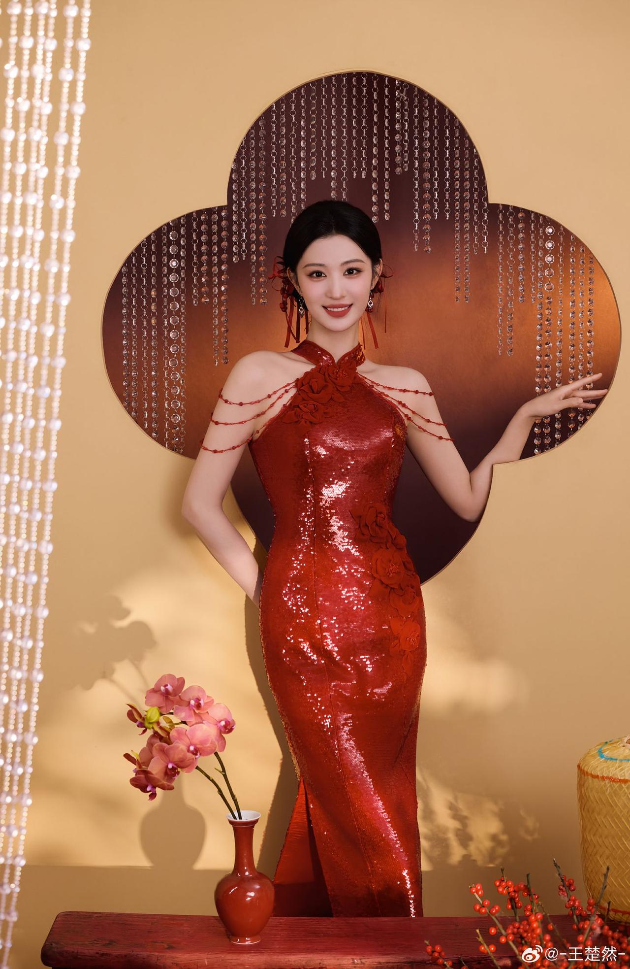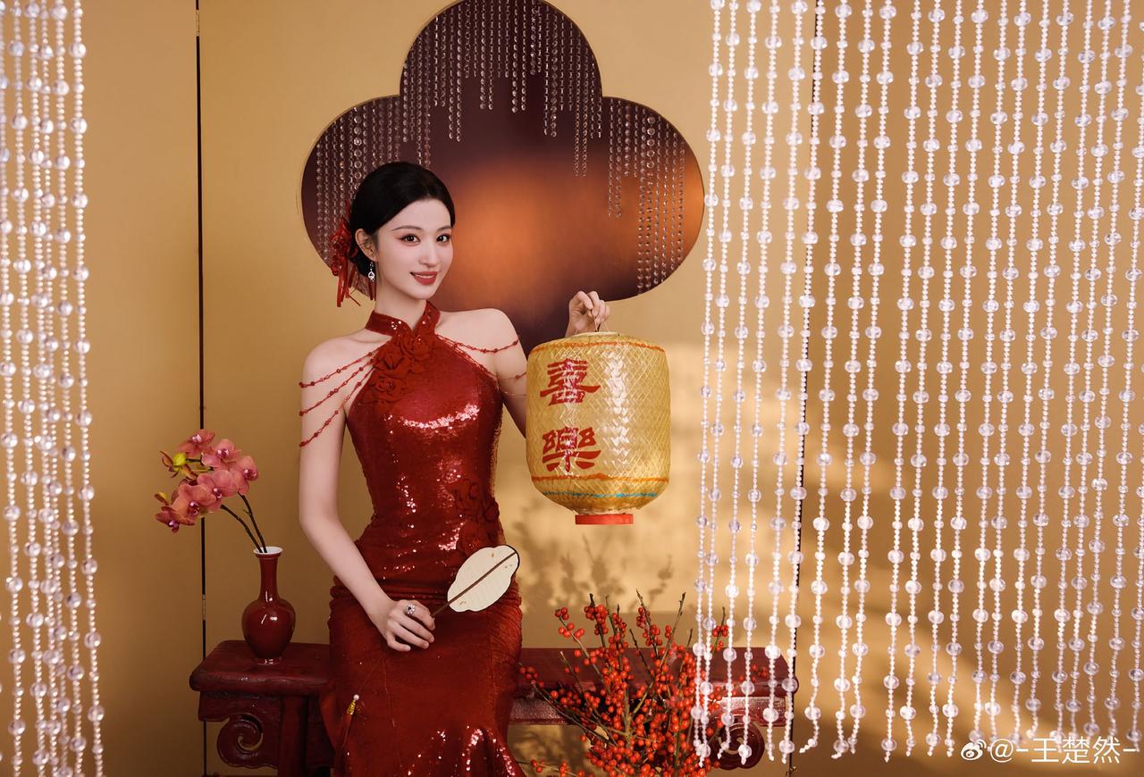 王楚然 珠串垂成一帘星子 把暖光滤成碎银 她的红裙是一捧燃烧的琥珀 亮片在褶皱里藏着细碎的火 发间的红绸挽住半缕风 耳坠轻摇,碰响空气里的余温 兰花斜斜倚在瓷瓶 把心事开成粉与金的晕 灯笼悬在檐角 “平安”与“喜乐”在纸间呼吸 她执扇的指尖掠过流苏 像在轻轻拂开旧年的尘 光影在云纹屏风上流淌 她抬眼时,世界便慢下来 红裙扫过木凳的纹路 把一整个春天的热烈 都收进这帧静止的时辰