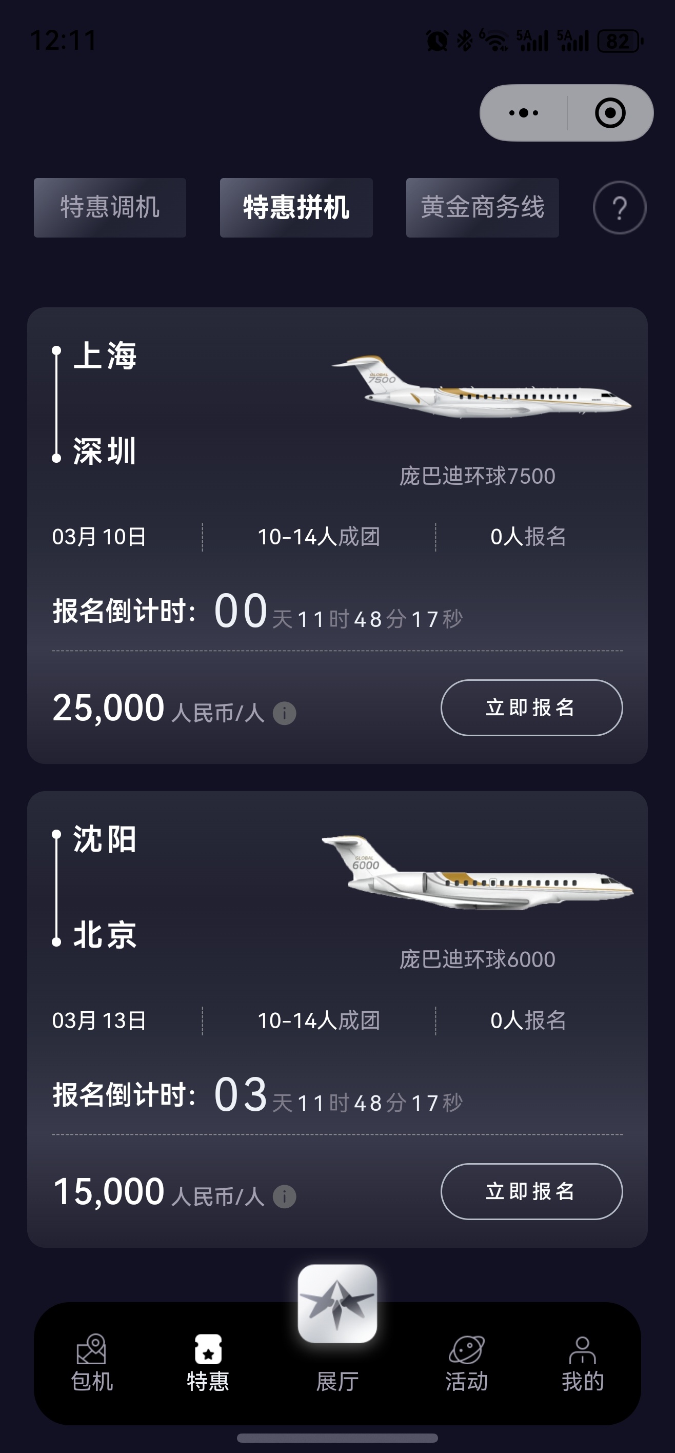 3月10日 上海—深圳 环球7500 2.5万一位