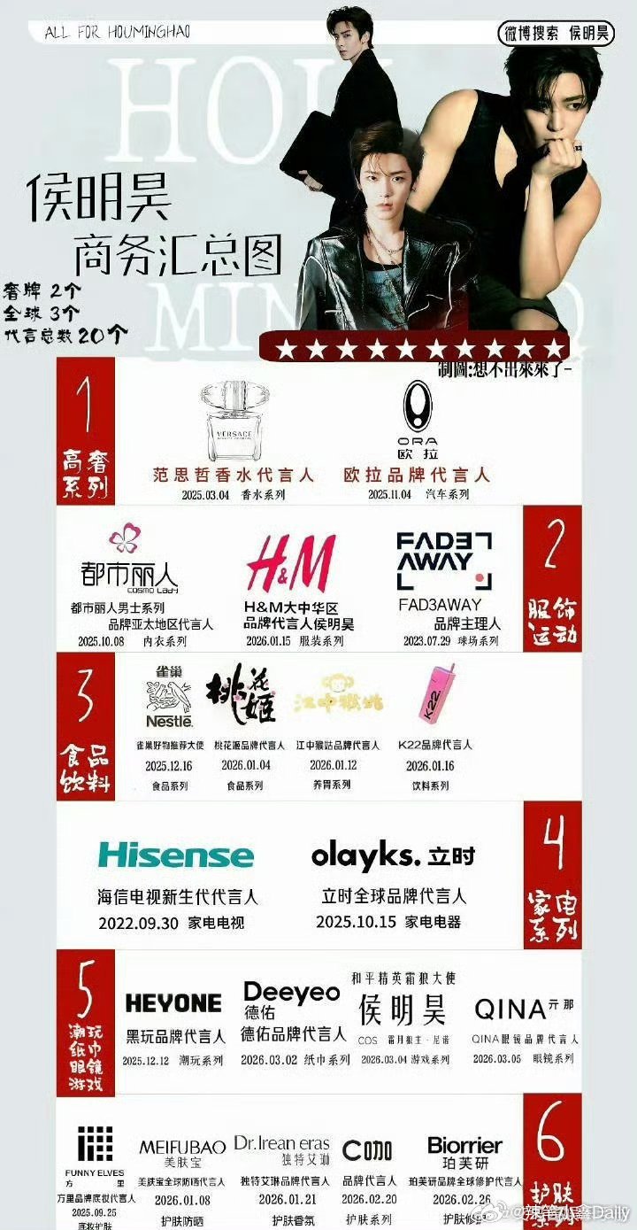 超like破25000,侯明昊26年商务热度持续上升🆙,影视、时尚音乐等全面