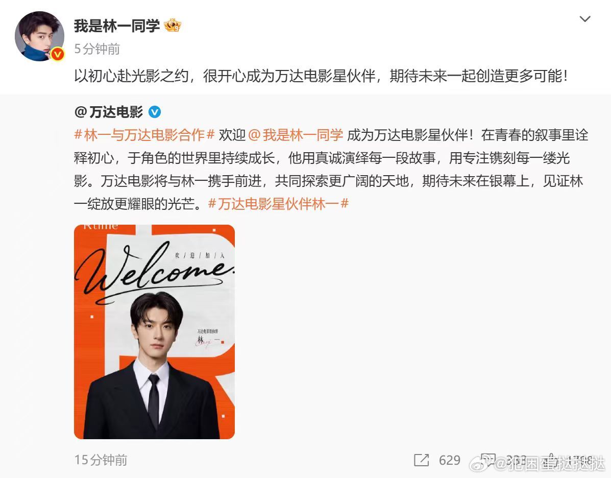 林一万达电影星伙伴林一成为万达电影星伙伴林一正式成为万达电影星伙伴!以真诚演绎角色,以热爱奔赴光影,携手同行,共启银幕新篇章!