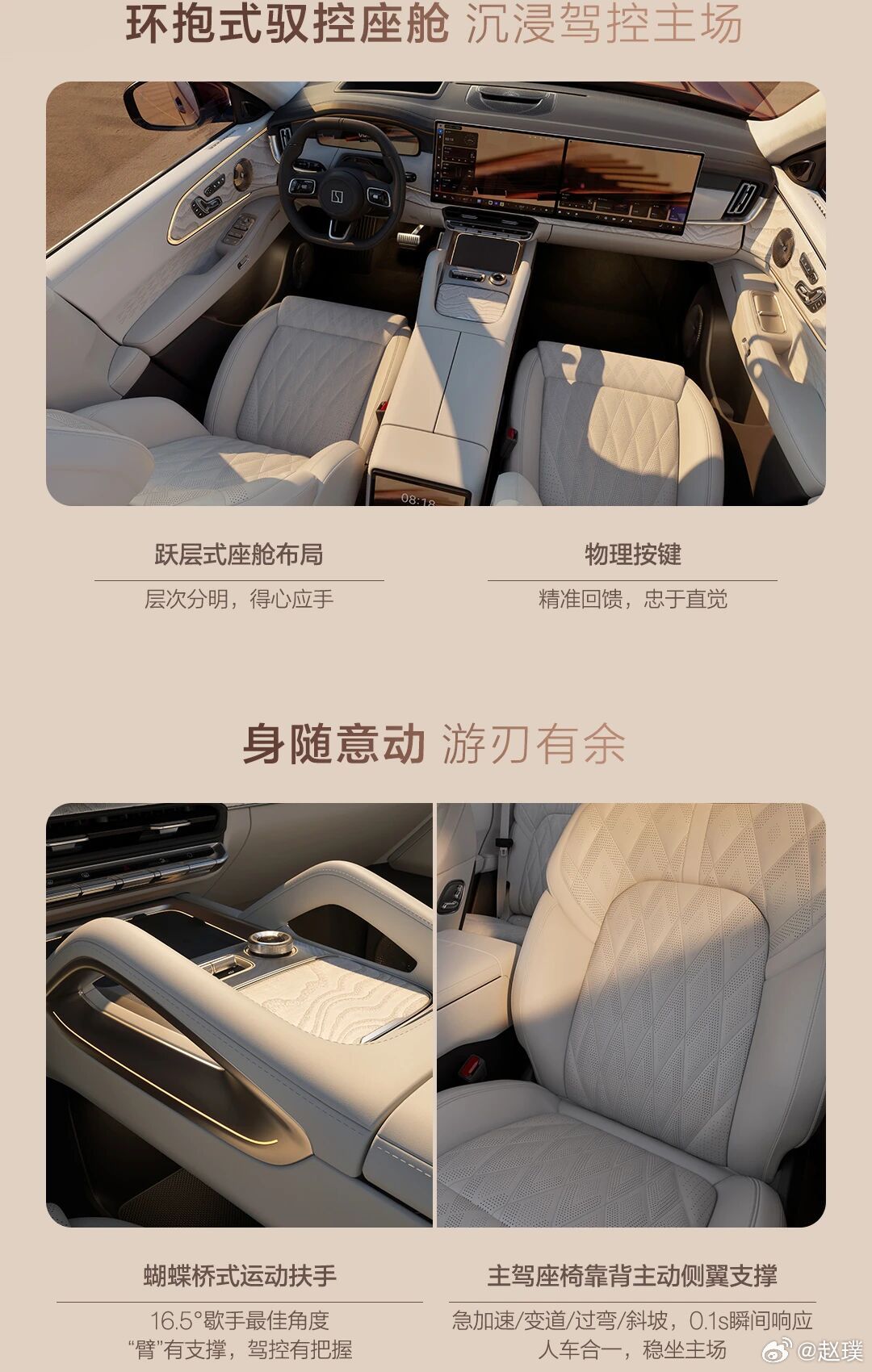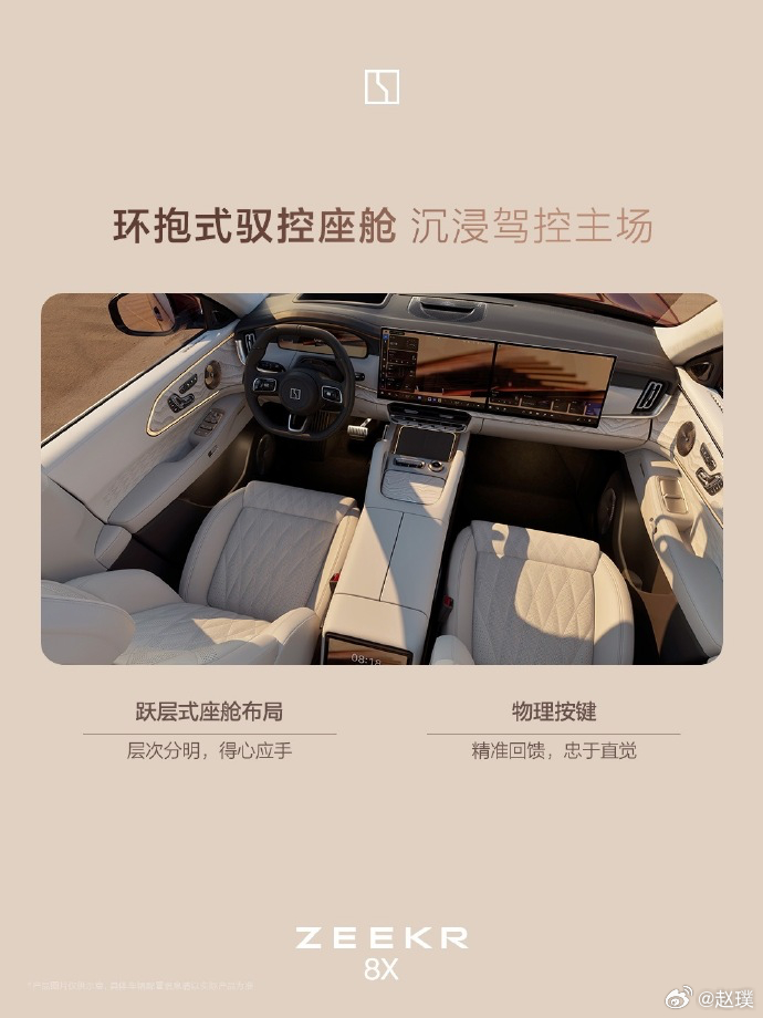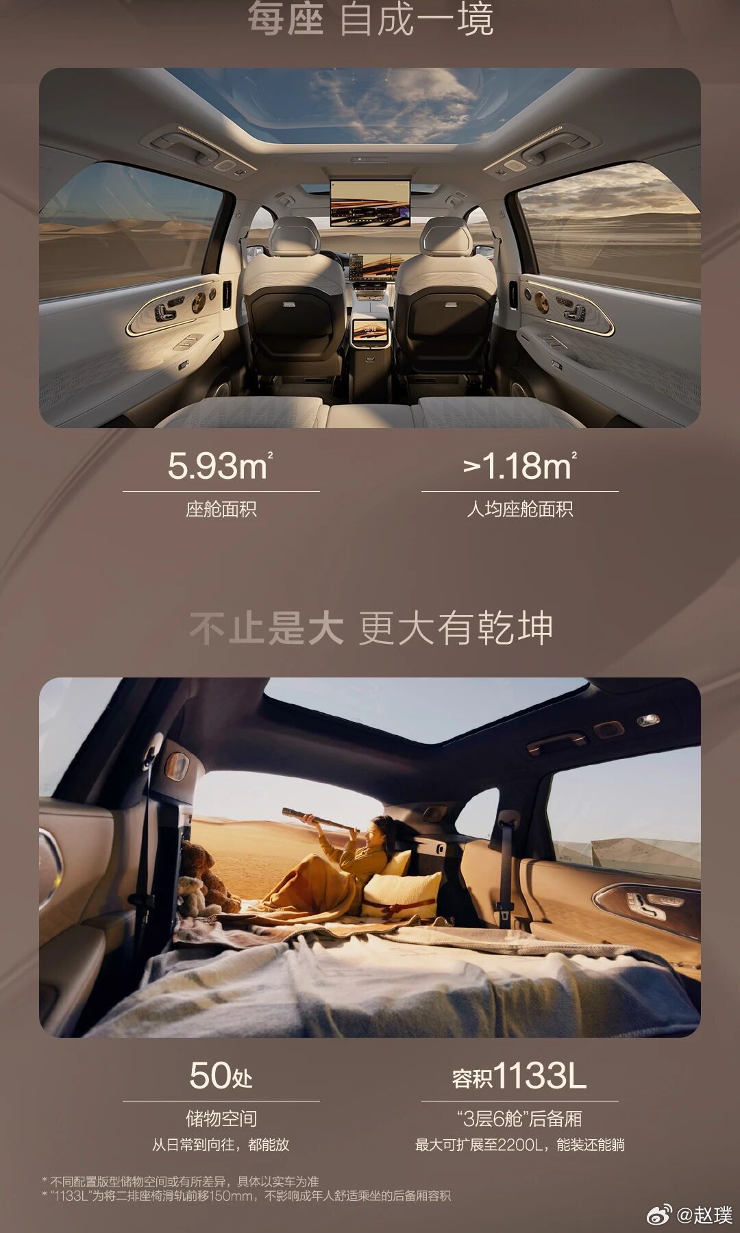 中控基本上延续了极氪9X的设计风格,后排提供零重力座椅、触控屏、娱乐屏、小桌板、脚踏、车载冷暖箱、电动遮阳帘以及座椅加热、按摩、通风等功能,同时搭载“宾利同款”Naim 音响。