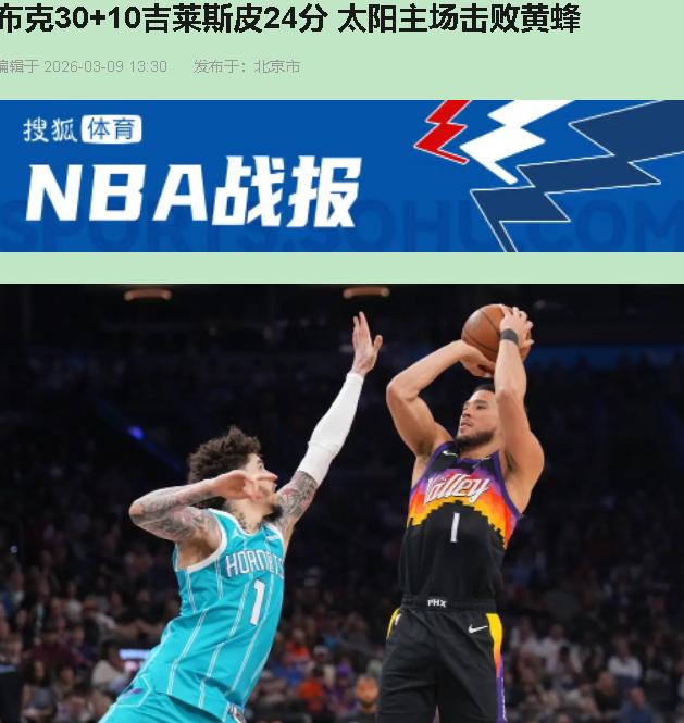 "布克30+10就无敌了?"刷到这数据我直接笑出声。今天太阳赢球,跟巨星兜底没半毛钱关系。 开局那画面太扎心。布克手感冻成冰坨,太阳被黄蜂摁着锤,眼看要崩。这时候,平时连稳定轮换都进不了的吉莱斯皮,突然掏出了巨星剧本。第一节压哨三分炸翻球馆,第三节末三罚全中稳军心,第四节两记冷箭直接射穿黄蜂心脏。24分?这哥们今天打得像偷了杜兰特的体验卡。 还有格林。第二节太阳外线集体便秘,分差拉到8分,他突然连扔两记三分加一个补篮,瞬间抹平。镜头扫过去,他脸上居然没波澜,就跟在训练馆随便扔扔似的。这种"无差别攻击"的松弛感,比巨星的硬解更让人窒息。 布克?数据刷得飞起,可前三节他在哪?直到第四节队友把13分的坑填平了,他才终于睡醒。那几记中距离确实美如画,可这时候黄蜂的心气早被吉莱斯皮打散了。 反观鲍尔。22+7+6看着华丽,末节却现了原形。防守端脚步灌铅,进攻选择飘上天,几个追身三分投得又急又歪。个人数据刷爽了,球队却像无头苍蝇。这就是球星依赖症——天赋透支过度,末节集体拉闸。 说白了,太阳赢在"平民暴动",黄蜂输在"巨星迷信"。篮球最动人的从来不是超巨的例行公事,而是小人物突然亮出獠牙。那些藏在替补席的X因素,才是赢球的真命脉。 布克很好,但今天太阳的心跳,是角色球员给的。布克30+10吉莱斯皮24分 太阳主场击败黄蜂