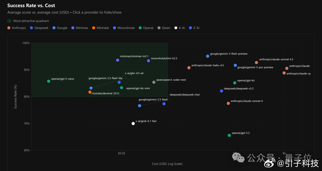 截至发稿前,榜单具体情况如下——整体而言,中国模型在成功率和速度方面都有不俗表现,价格方面则稍逊。