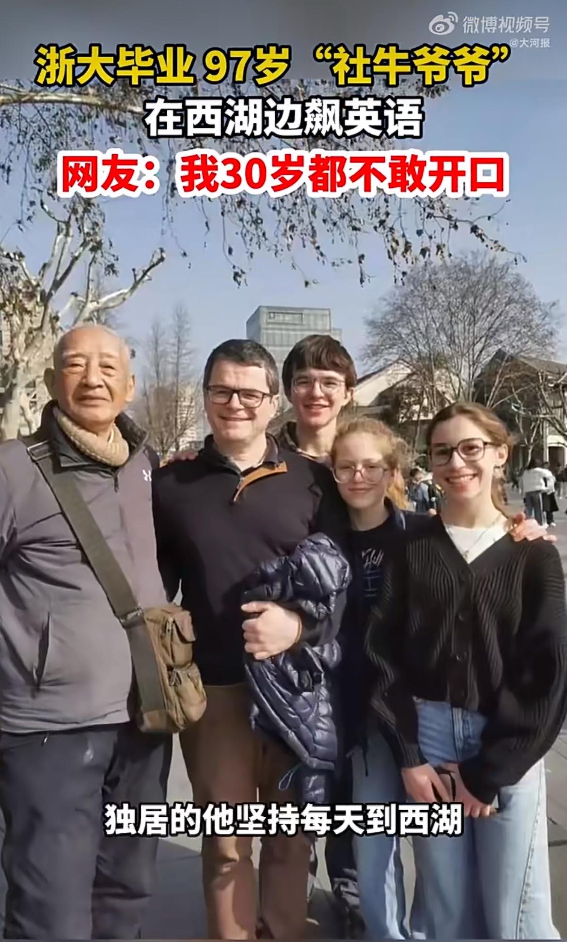 “活到老,学到老!”98岁爷爷西湖边“抓”老外学英语,这操作把网友看懵了!别人家老人退休跳广场舞,他却专挑周末蹲守西湖,目标锁定外国游客,还总结出一套“挑人秘籍”,中东游客英语可能磕磕绊绊,英联邦国家的人更对胃口?这到底是闲来无事的“老顽童”行为,还是另类养老新潮流? 近日,在杭州西湖岸边,一位98岁高龄的爷爷成了“顶流”网红。画面中这位头发花白的老人家精神矍铄,正操着一口流利的英语,自信大方地与身边的外国游客谈笑风生。他不仅向对方介绍西湖的美景,还热情地推介起当地的老年“英语角”,这从容优雅的范让路过的行人和屏幕前的网友纷纷竖起大拇指,直呼这才是真正的“活到老、学到老”。 这位爷爷姓徐,今年已经快百岁高龄了。据老人家自己介绍,他有一个坚持了很久的习惯:只要周末天气晴好,他就会准时出现在西湖边。他的目标非常明确,就是参加那里的英语角,和志同道合的老伙伴们一起“抓外国人聊天”。这种独特的锻炼方式,不仅让他保持了敏锐的思维,更让他成了西湖边一道亮丽的风景线。 说起“抓人”聊天,徐爷爷可是总结出了一套相当专业的经验。他告诉大家,在西湖边找外国人切磋英语也是有讲究的。比如有些来自中东或者俄罗斯的游客,虽然也是外国人,但他们的母语并非英语,交流起来可能并不一定流利。相比之下来自英联邦国家、加拿大、澳大利亚的游客,或者是那些在中国留学的学生,往往英语口语更地道,沟通起来也更顺畅。因此爷爷和他的伙伴们在人群中会优先“锁定”这些目标,主动上前攀谈。 这种“主动出击”的学习态度,源于爷爷对生活的热爱。在英语角里,不仅有像徐爷爷这样近百岁的高龄老人,还有许多退休后重新拿起课本的爷爷奶奶。他们聚在一起,不为考试,不为升职,纯粹是为了充实晚年生活,跟上时代的步伐。徐爷爷用亲身经历告诉大家,年龄从来不是阻碍进步的借口,只要心年轻,西湖边就是最好的课堂。 随着视频在网络上的走红,西湖英语角也吸引了更多年轻人的关注。不少网友留言表示,看到98岁的爷爷还在如此努力地交流学习,自己手里的手机瞬间就不香了,甚至有人开玩笑说要组团去西湖边向爷爷“求教”。这种跨越代际的共鸣,让传统的西湖美景多了一份人文的厚度,也展现了当代老年人积极向上、从容自信的精神风貌。 其实徐爷爷的故事不仅仅关乎英语,更关乎一种生活态度。在很多人印象中,晚年生活或许是围着柴米油盐和电视机转,但徐爷爷却选择在西湖的微风中,用一种国际化的语言去连接世界。这种不断探索勇于交流的行为,实际上是老人家在用自己的方式保持与社会的深度链接,展现出极高的生命韧性。 现在西湖边的英语角依然热闹,徐爷爷的英语口语也越来越溜。他这种不带功利心的坚持,正激励着越来越多的人放下焦虑,回归到学习本身的快乐中去。 如果你也被这位98岁爷爷的自信和毅力打动,请点个赞为他加油,转发给身边的朋友一起感受这份“活到老学到老”的正能量,关注我,带你走进更多温暖又励志的社会百态!年底的快乐是卡罗拉给的 问界M9祝您新年手到福来 威兰达AIR权益价13.78万 来源:大河报