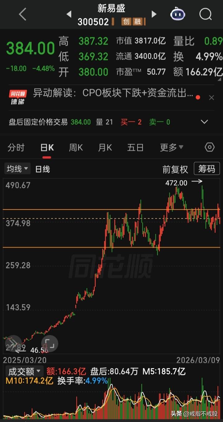 【每日观察2026.03.09】美以对伊中东战火第十天,在总成交额26706亿比上个交易日增量4513亿、上涨1423家下跌3964家、涨停50家跌停9家的情况下,谁在成交额前十 新易盛 166.29亿,跌4.48% 中际旭创162.31亿,跌3.57% 华工科技154.18亿,涨3.33% 紫金矿业139.05亿,涨1.89% 拓维信息137.98亿,涨停 特变电工137.23亿,涨1.64% 阳光电源126.74亿,涨4.01% 网宿科技118.21亿,涨12.21% 华胜天成115.21亿,涨2.62% 天孚通信113.66亿,跌4.93%