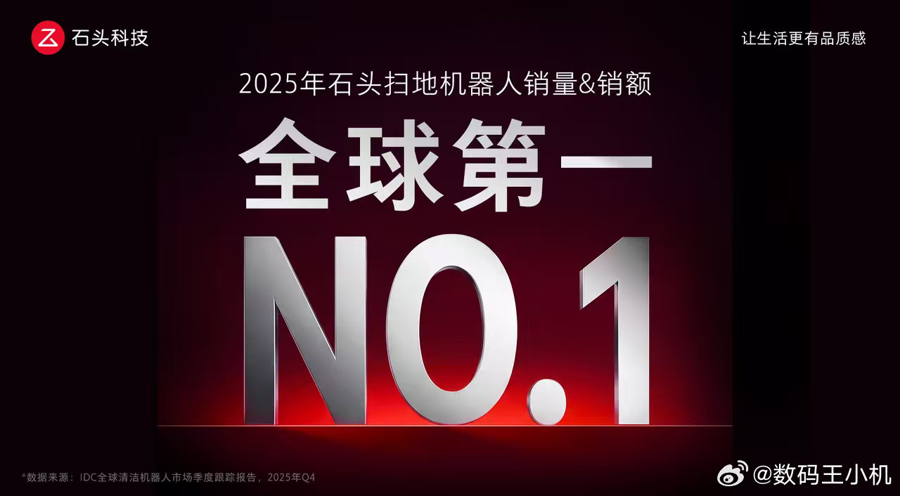 🏆 双冠加冕,不负信赖!IDC数据报告最新发布石头扫地机斩获2025年全球销量&销额双第一