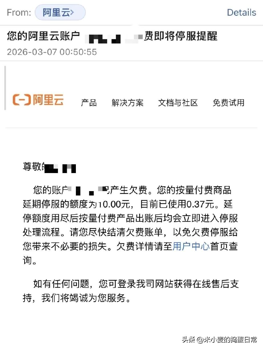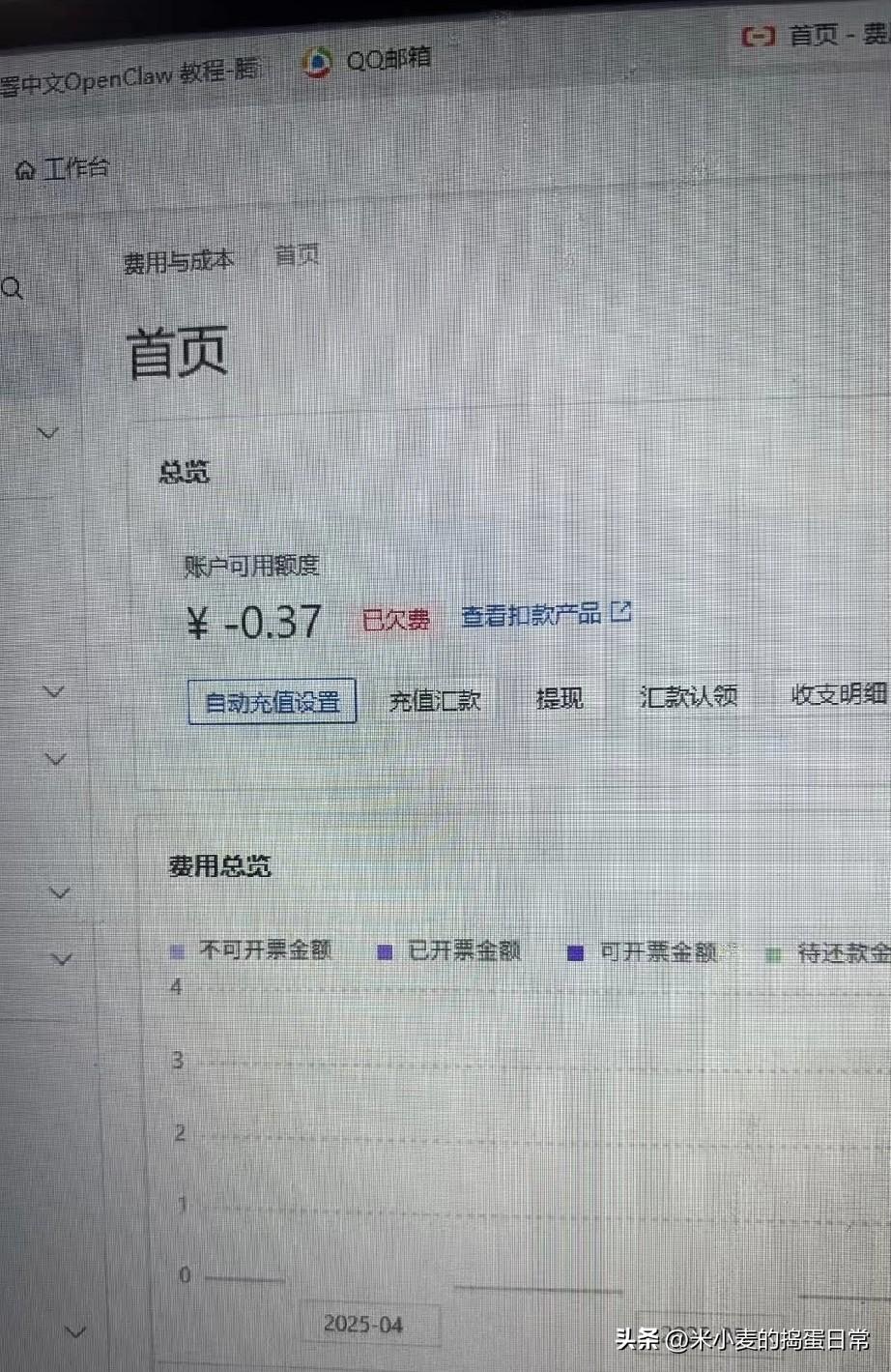 第一批OpenClaw受害者出现了! 家人们谁懂啊!周末心血来潮在自己电脑装了OpenClaw,想着用阿里云模型查点肉价数据,就问了几句,结果一晚上100万token直接没了,账户还欠费0.37元! 还好阿里云及时发了停服提醒,不然我真要“破产”了。之前在公司用内部账号,无限token+共享技能,写汇报、跑SQL、抢会议室效率飞起,粉丝统计笔记也是这么搞出来的,功能是真强,但这token烧得也真快。 奉劝大家用OpenClaw一定要盯紧token消耗,别像我一样,聊着聊着就“负债”了。这玩意儿就像个吞金兽,爽是爽,但钱包真扛不住啊! OpenClaw AI工具避坑 程序员日常 要不要我再帮你写一个更犀利、带点吐槽风格的版本,方便你在头条上多平台发布?