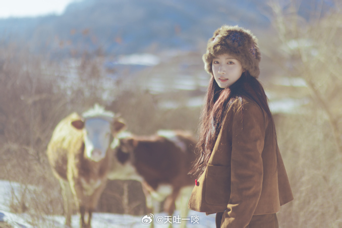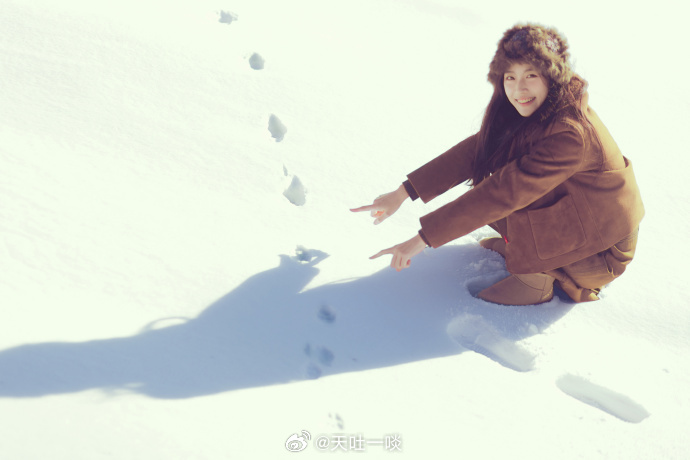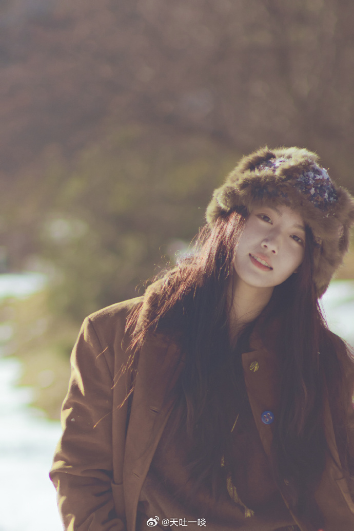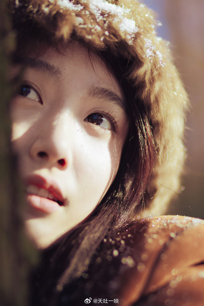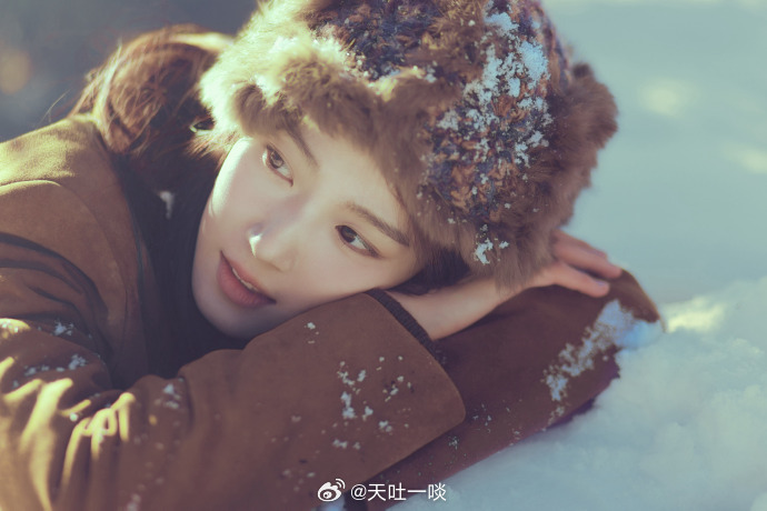 棕大衣戴毛绒帽、发丝沾雪笑容治愈——卢昱晓。每日明星美图分享