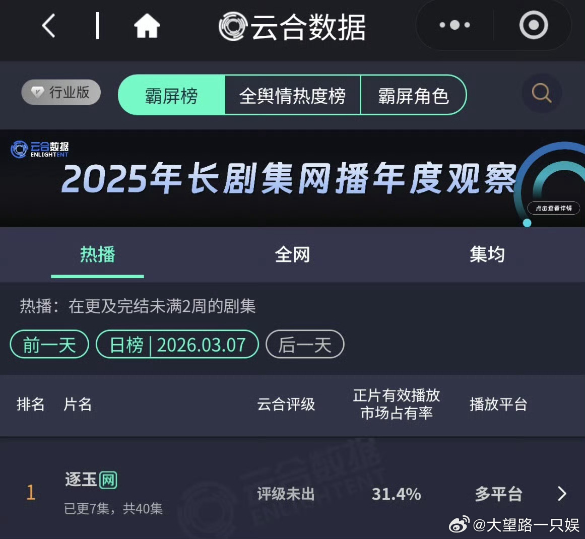 网友举报逐玉收视率造假