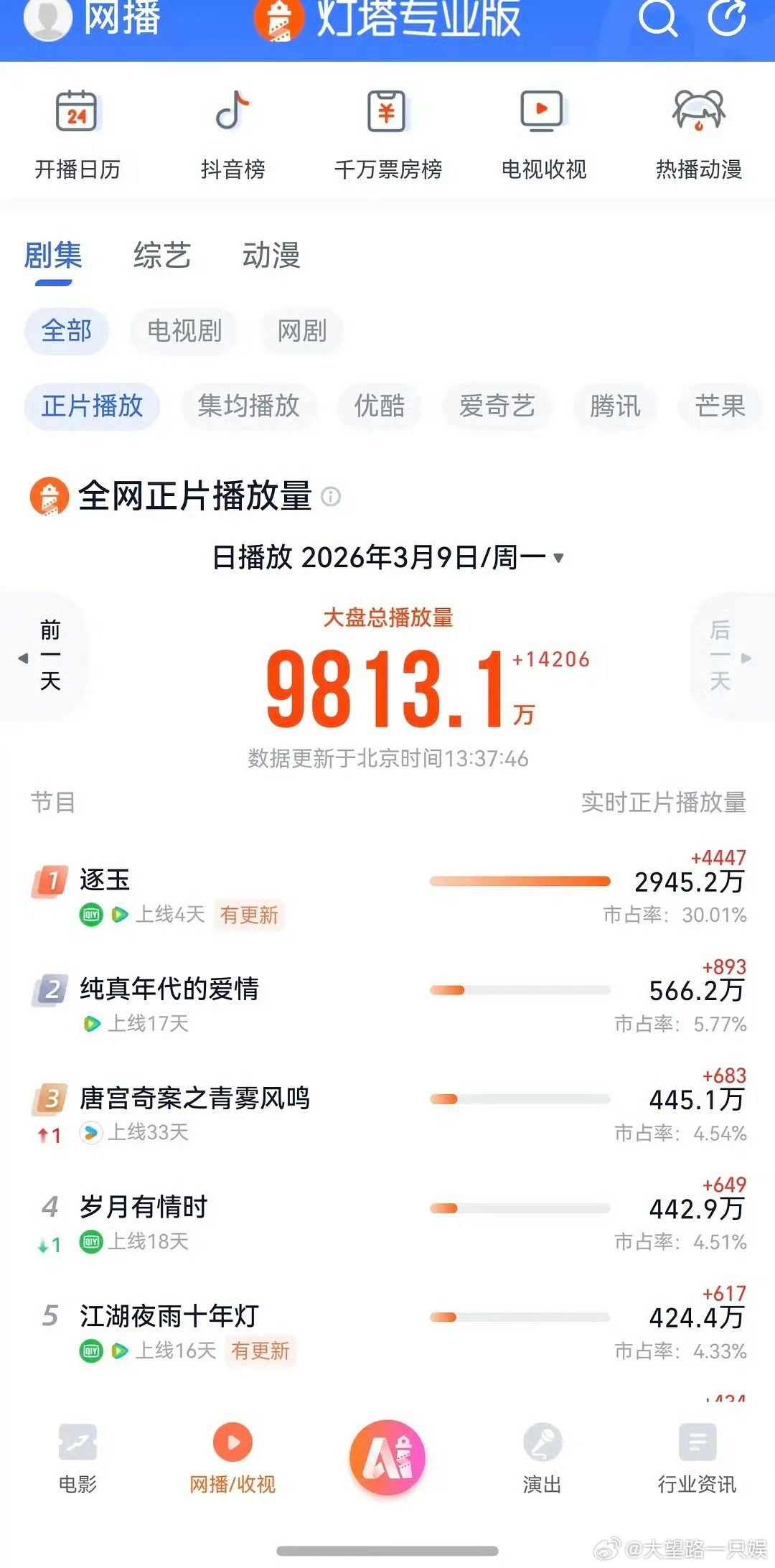 网友举报《逐玉》收视率造假,播放量已经超过《狂飙》了?虽然《逐玉》最近确实很出圈,但是《狂飙》可是全民级别的爆剧啊这波你怎么看?