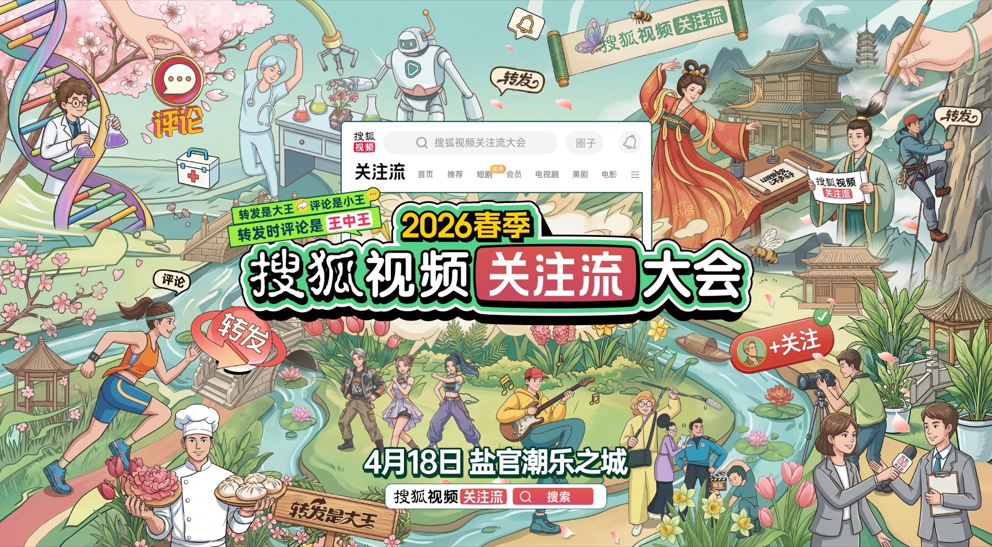 一手消息:搜狐视频播主大会正式更名为搜狐视频关注流大会!4月18日,2026春季搜狐视频关注流大会将于“盐官潮乐之城”热血启幕。汉服、KPOP、文化、健康、户外、科学、二次元、美食多个热门分区重磅集结,覆盖国风潮流、韩流风尚、人文艺术、养生科普、户外生活、硬核科普、动漫次元与舌尖美味,多元内容一站式汇聚,满足你的多样兴趣与精神需求!往届孟美岐、许佳琪、王怡人、赞多等明星主播惊喜助阵,今年又会解锁哪些新惊喜?搜狐视频关注流全程直播,共赴这场春日创作盛宴~ 关注流大会