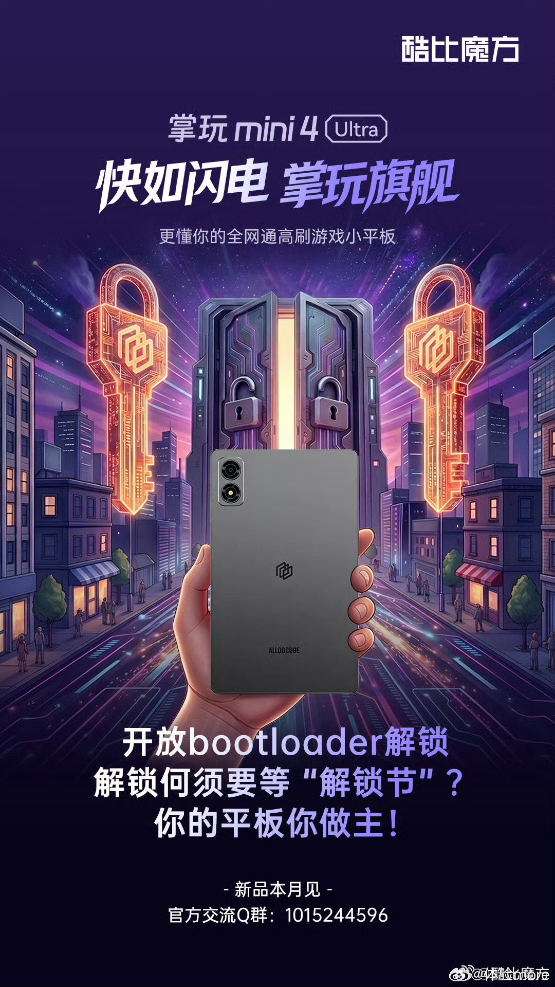 酷比魔方是会蹭热度的,掌玩mini 4 Ultra官宣开放BL解锁。