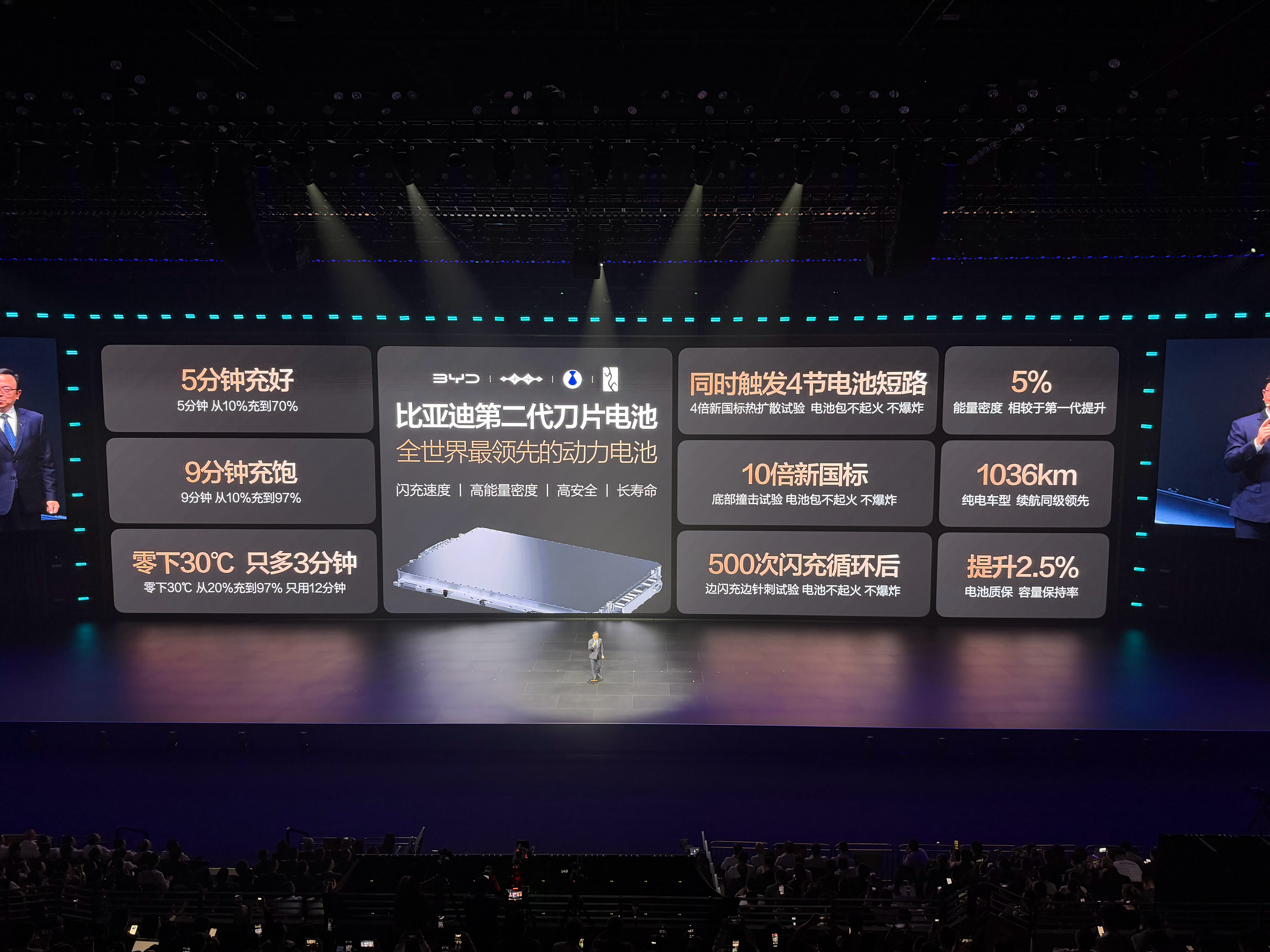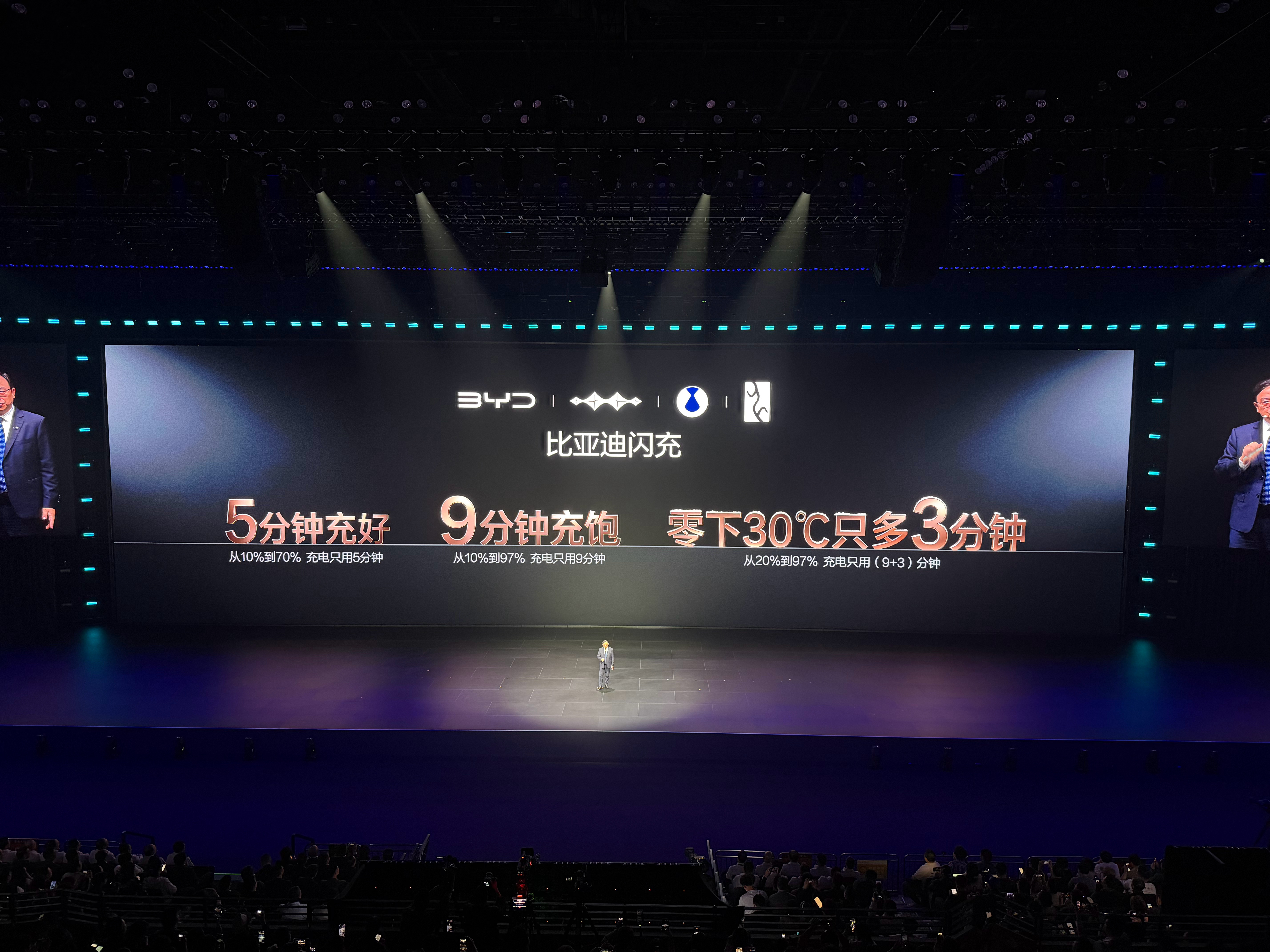 比亚迪这次发布了第二代刀片电池和闪充技术,补能效率飞速提升!常温下5分钟充好,9分钟充饱,就算在零下30℃的低温环境,充电时间也只多3分钟。这对很多电车用户来说,充电慢和冬天补能难的痛点,被全部解决。