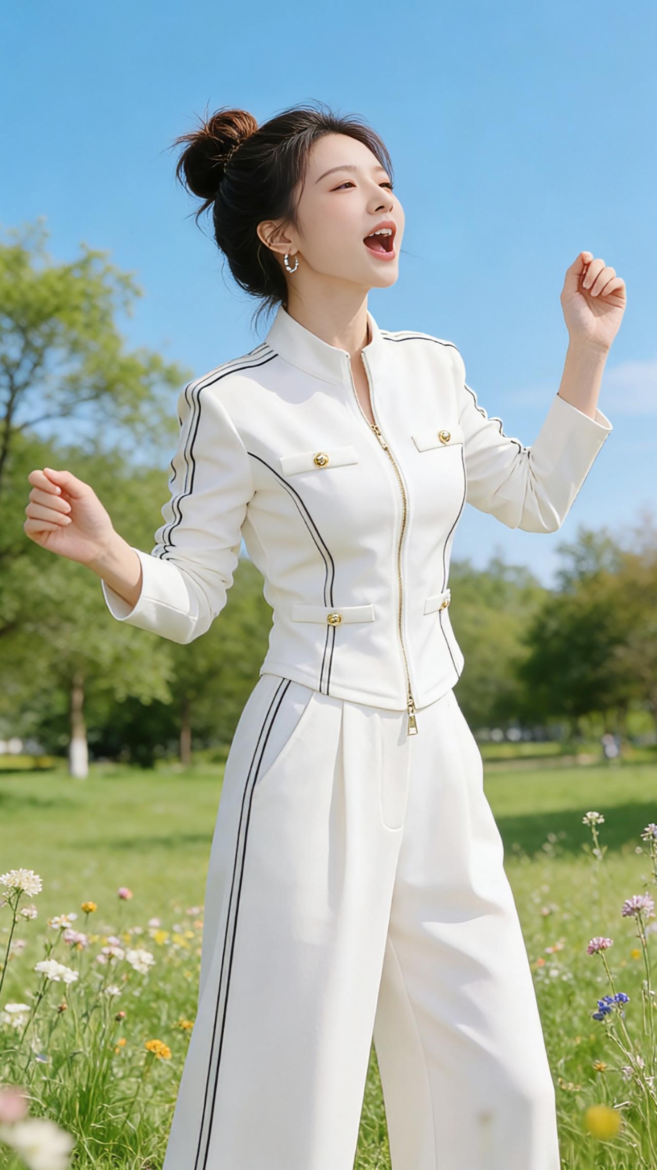 风掠过发梢,带着春日的甜香。 白衬衫的褶皱里藏着温柔,黑裙角扬起轻快的节拍。 发
